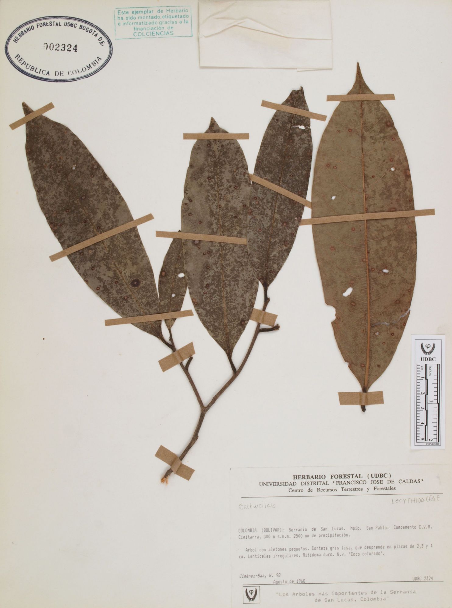 Fotografía del ejemplar Jiménez-Saa, H. 98, determinado como Eschweilera sp.