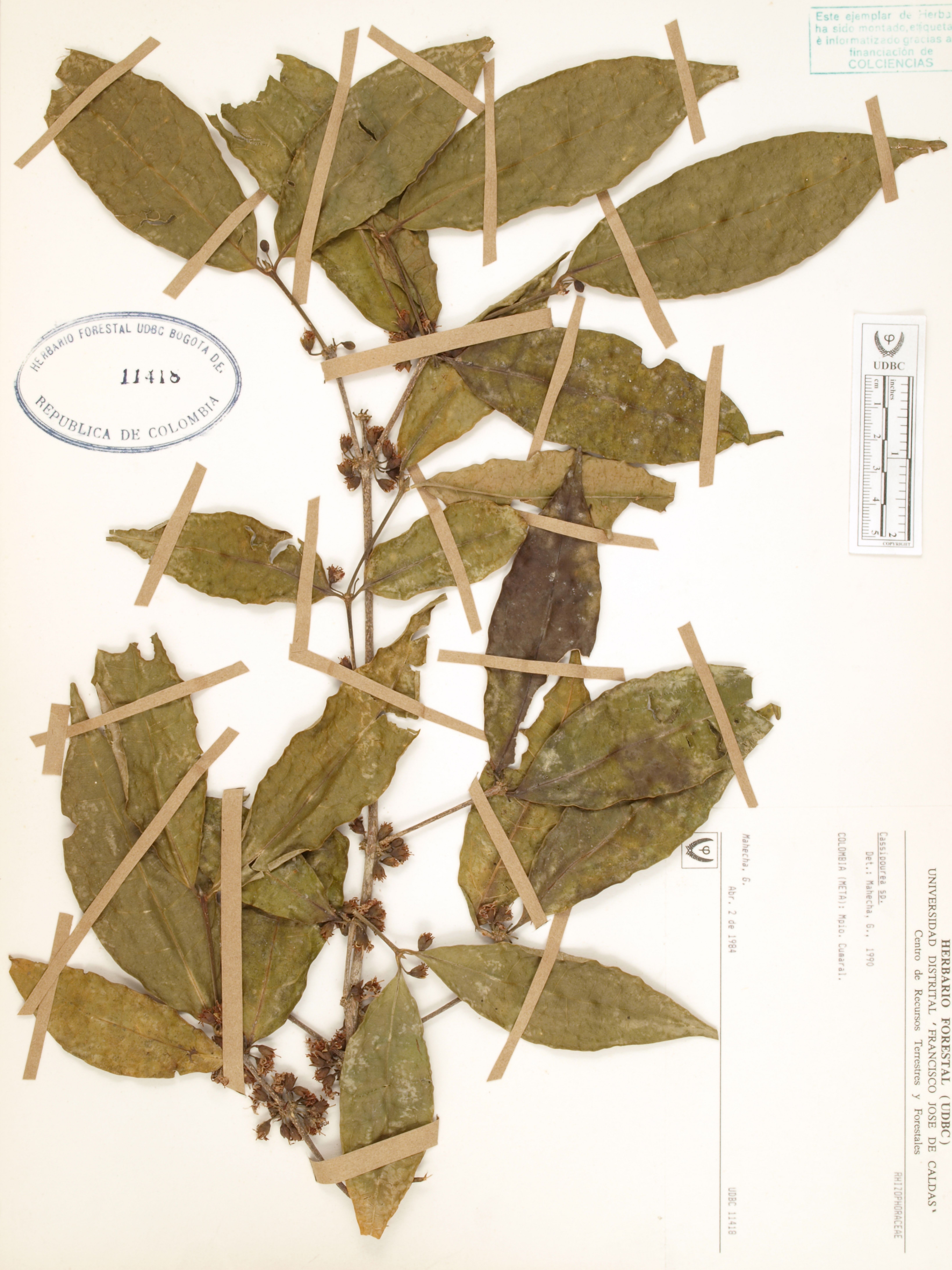 Fotografía del ejemplar Mahecha, G., determinado como Cassipourea sp. en el año 1990