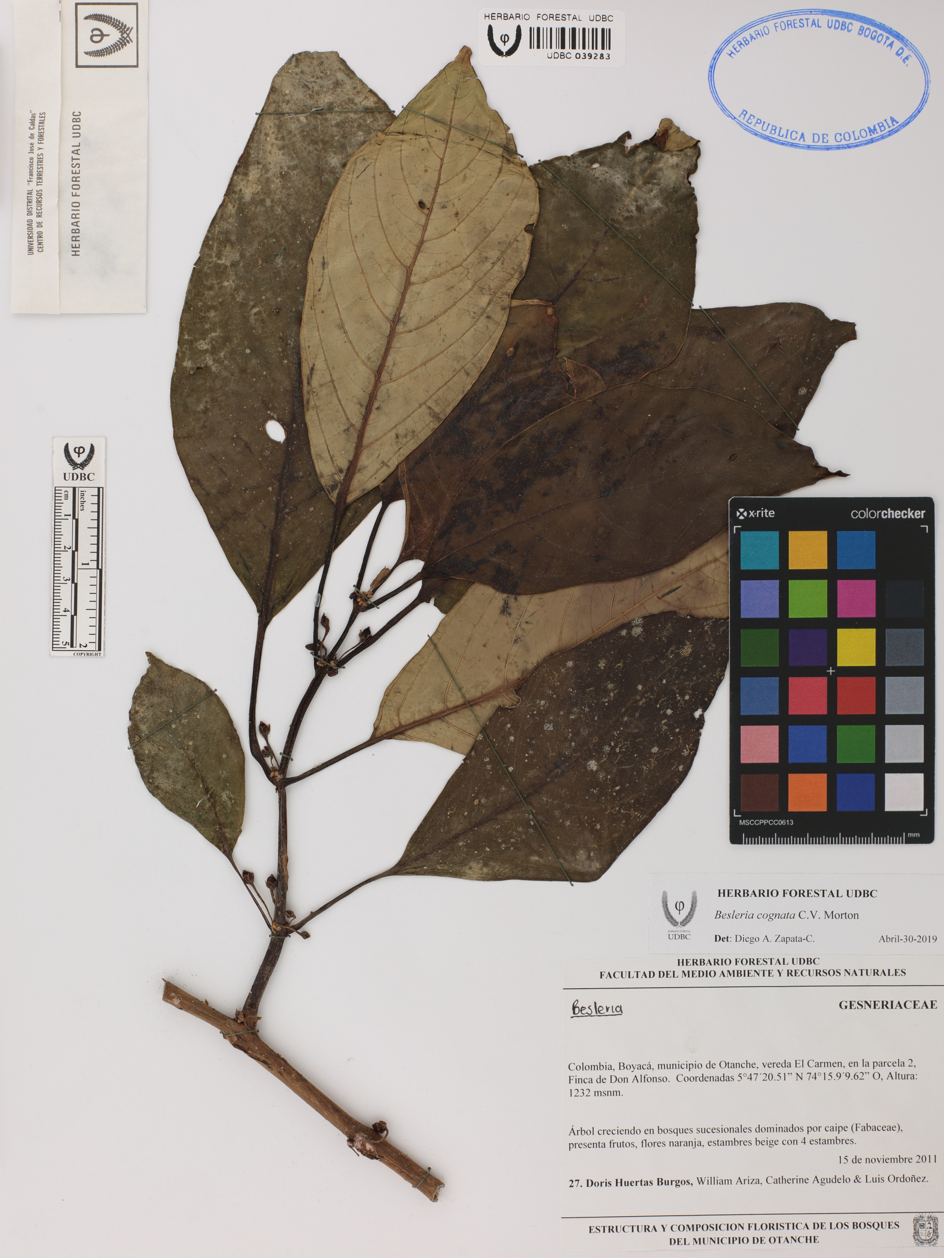Fotografía del ejemplar Huertas, D. 27, determinado como Besleria cognata en el año 2019