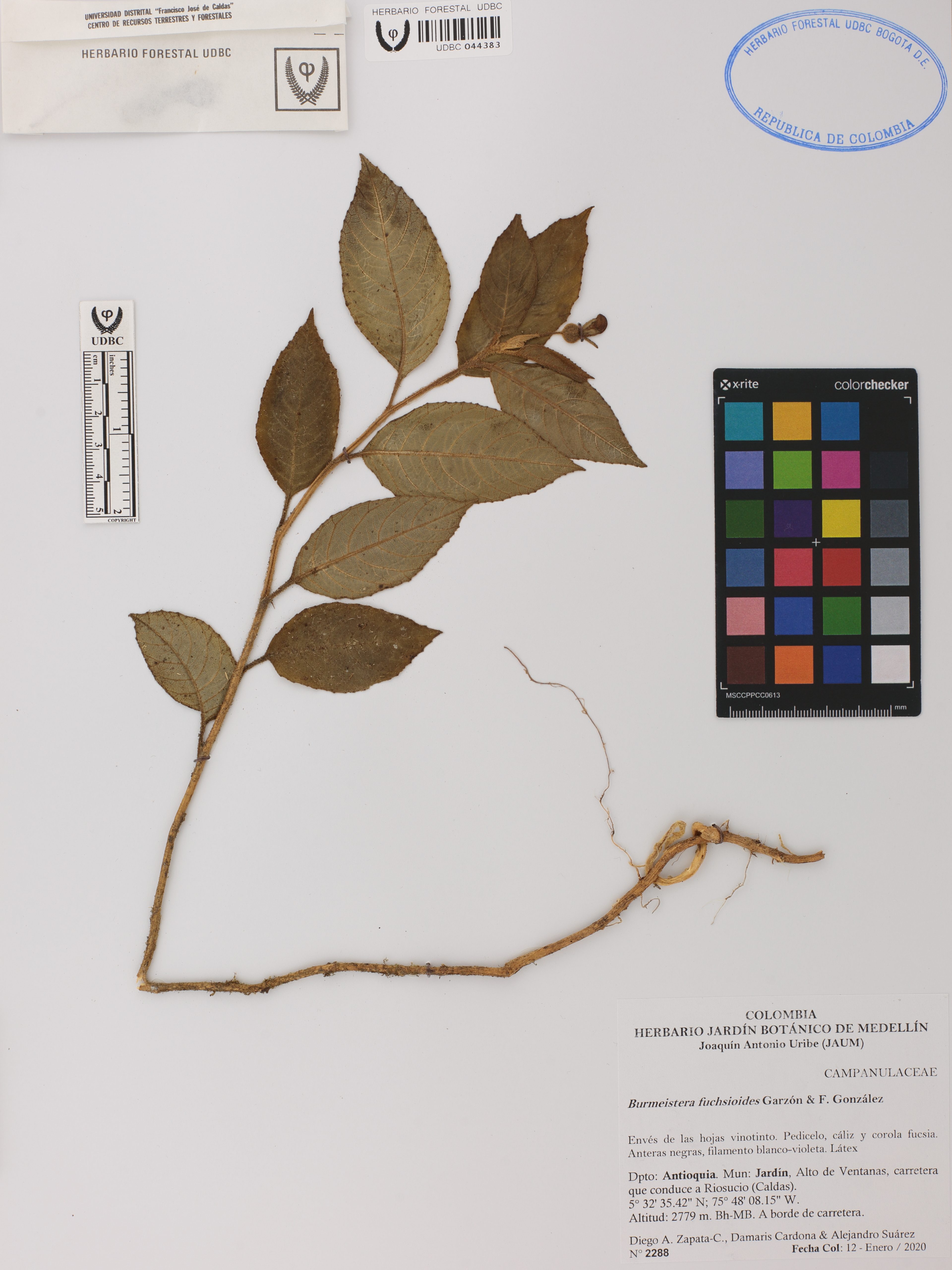 Fotografía del ejemplar Zapata-C., D. 2288, determinado como Burmeistera fuchsioides en el año 2020