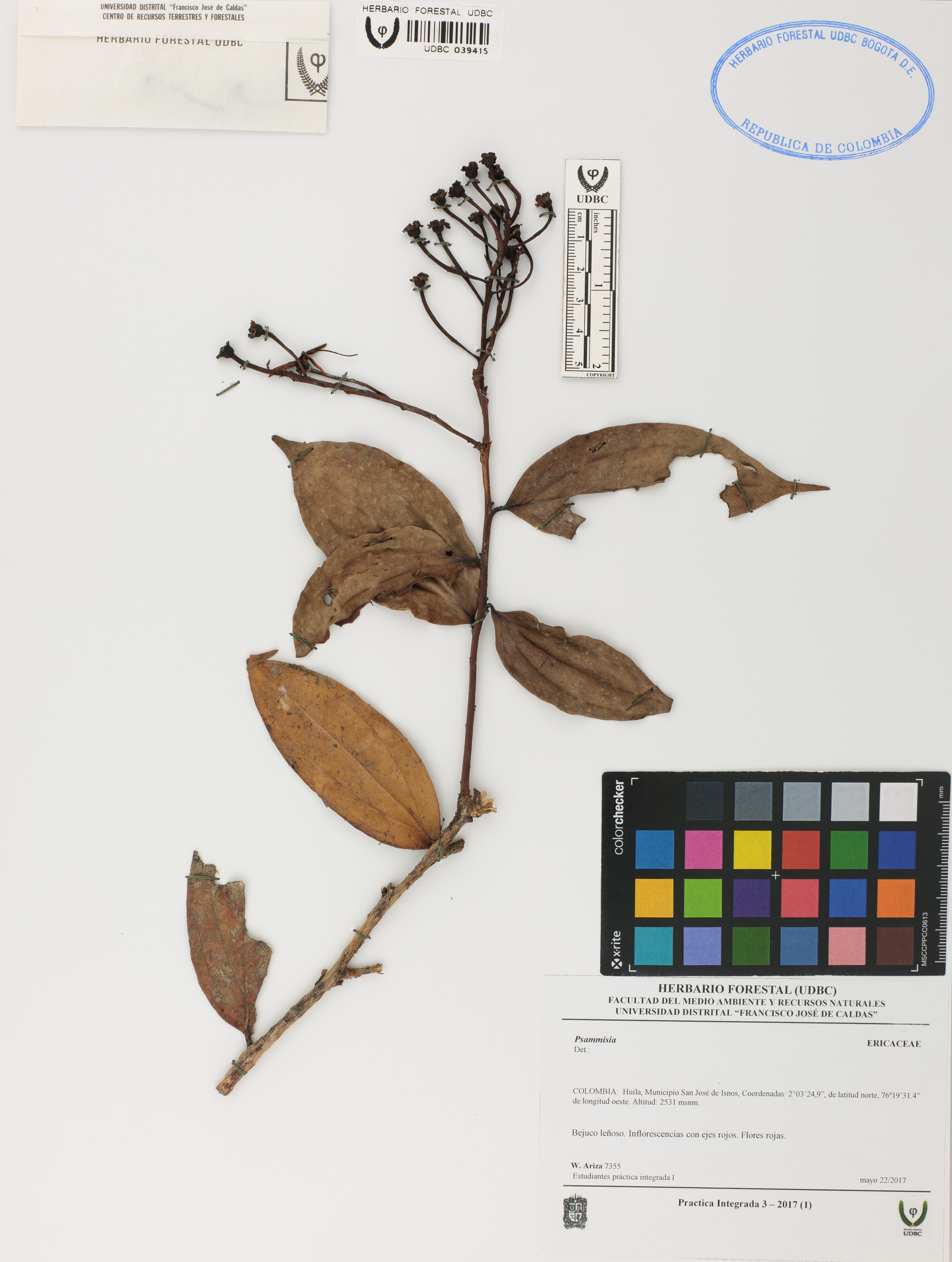 Fotografía del ejemplar Ariza, W. 7355, determinado como Psammisia sp.