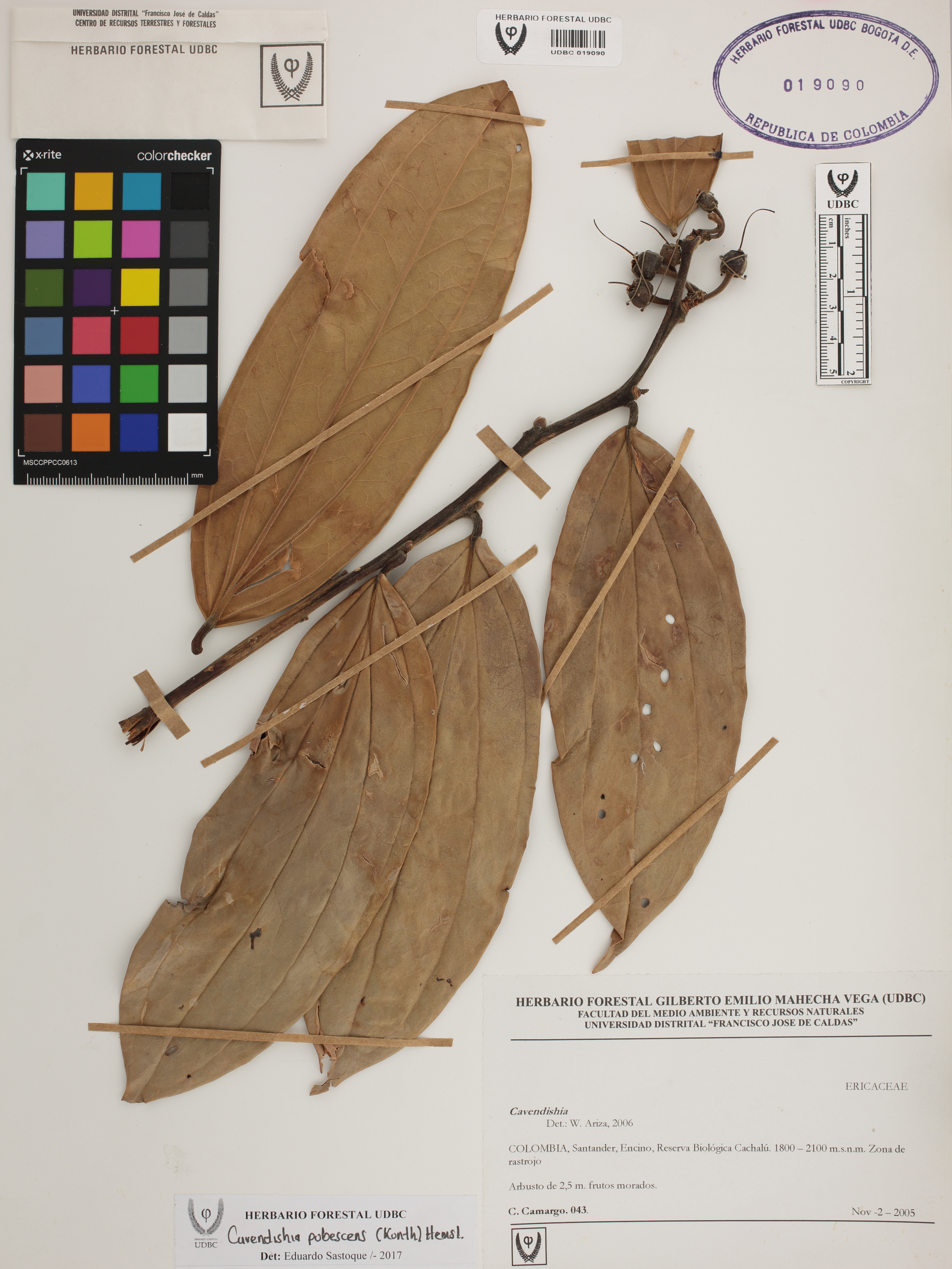 Fotografía del ejemplar Camargo, C. 43, determinado como Cavendishia pubescens en el año 2017