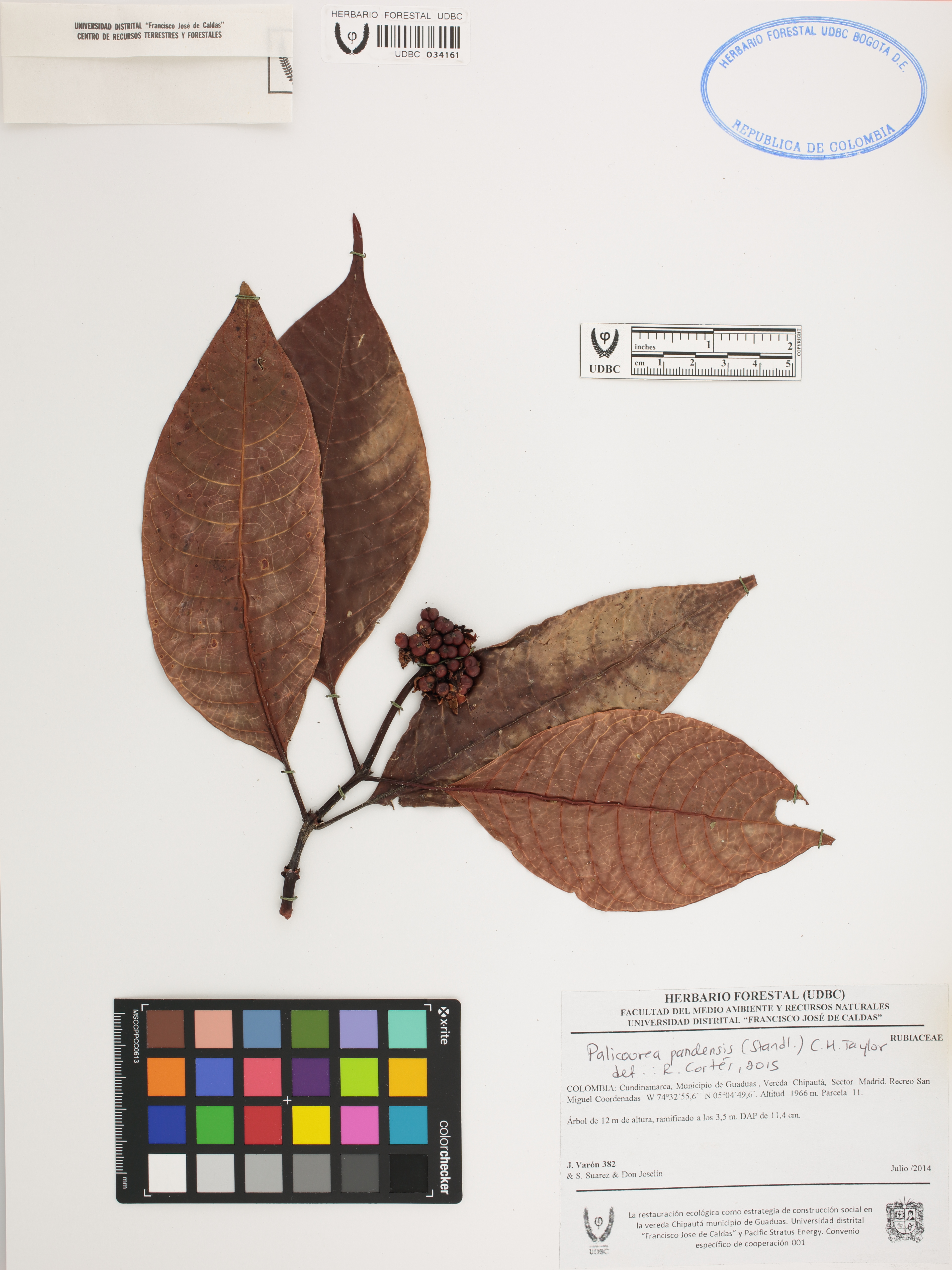 Fotografía del ejemplar Varón, J. 382, determinado como Palicourea pandensis en el año 2015