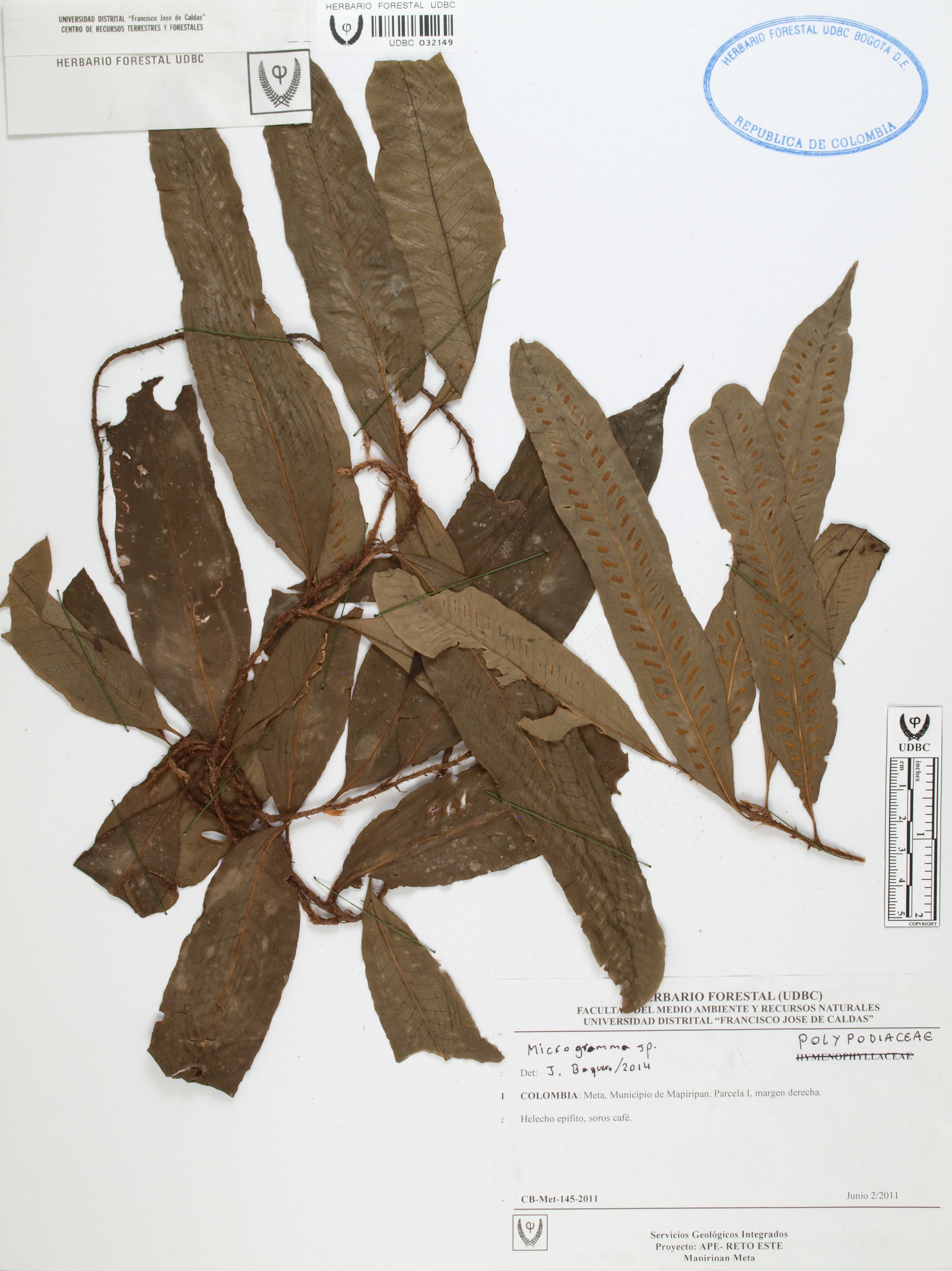 Fotografía del ejemplar SD 145, determinado como Microgramma sp. en el año 2014