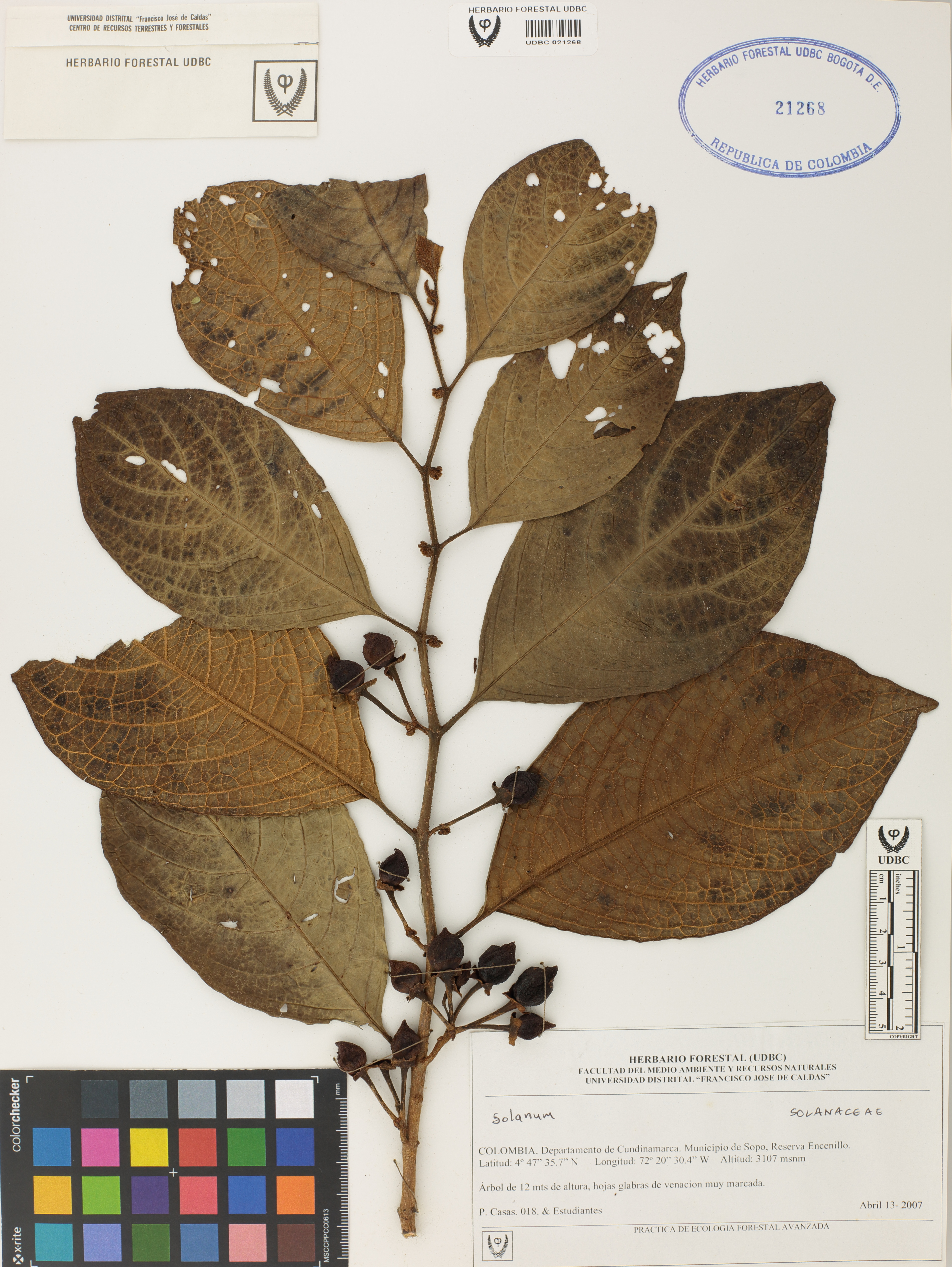 Fotografía del ejemplar Casas, P. 18, determinado como Solanum sp.