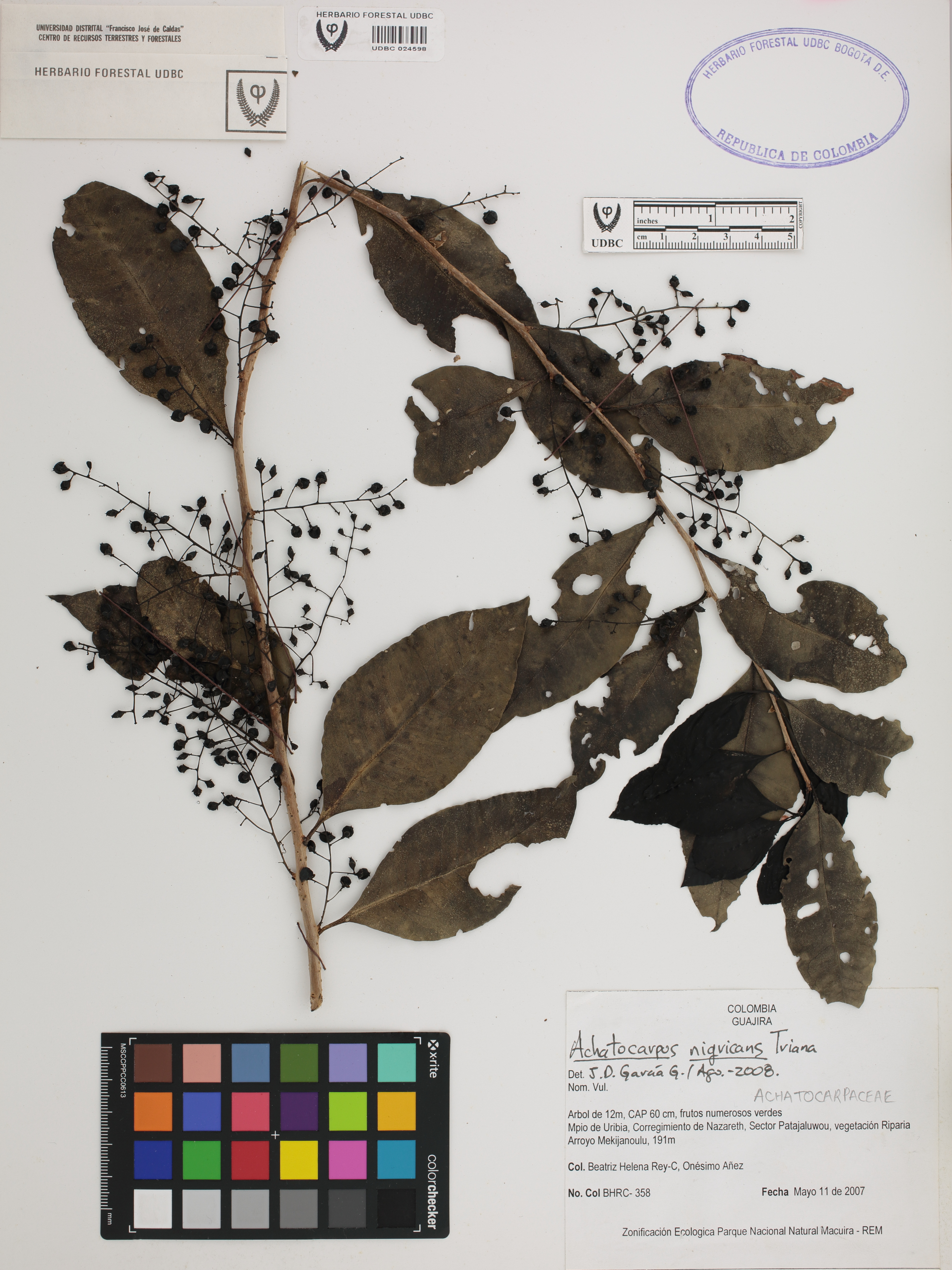 Fotografía del ejemplar Rey-C., B. 358, determinado como Achatocarpus nigricans en el año 2008