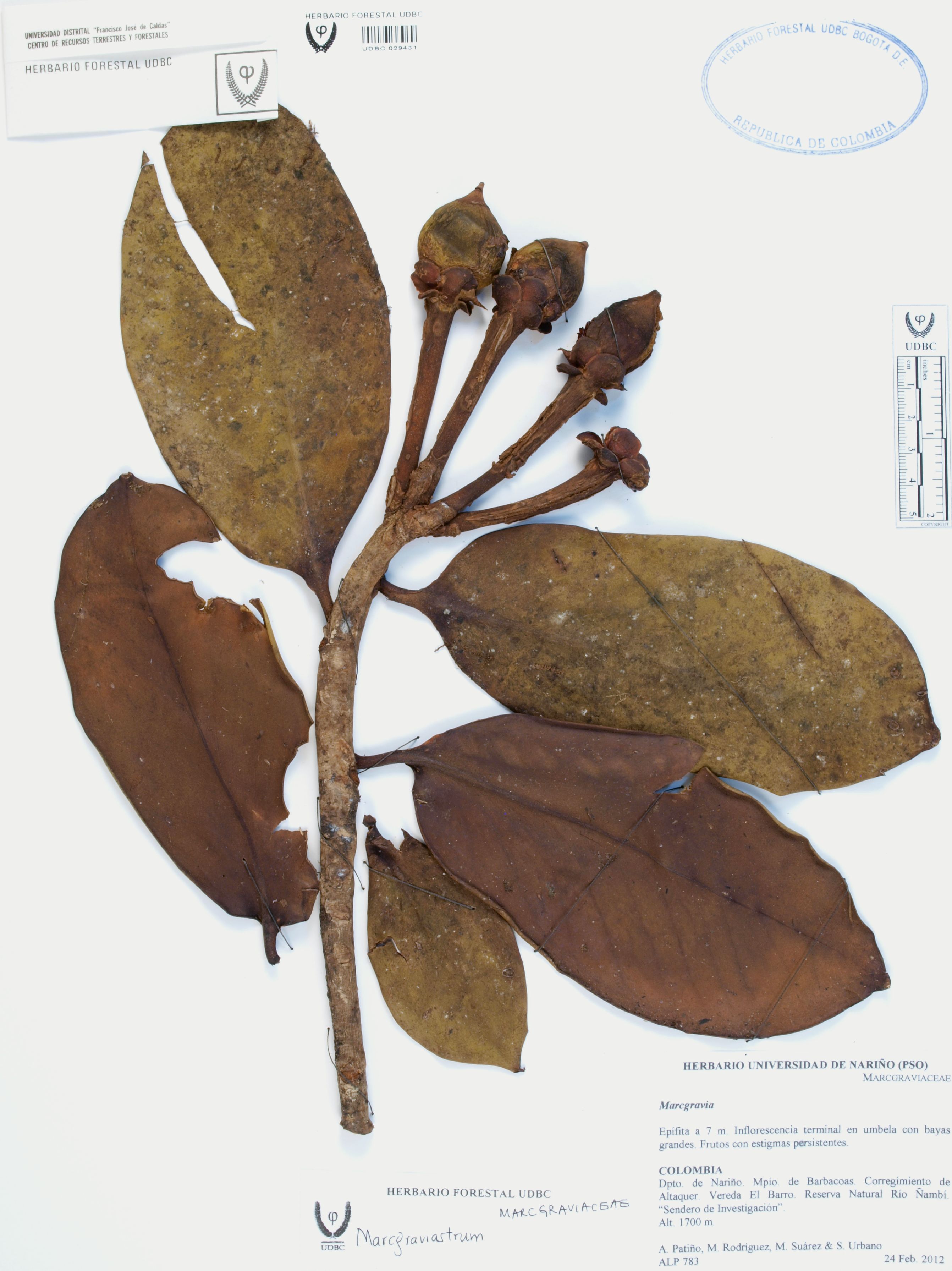 Fotografía del ejemplar Patiño, A. 783, determinado como Marcgraviastrum sp.