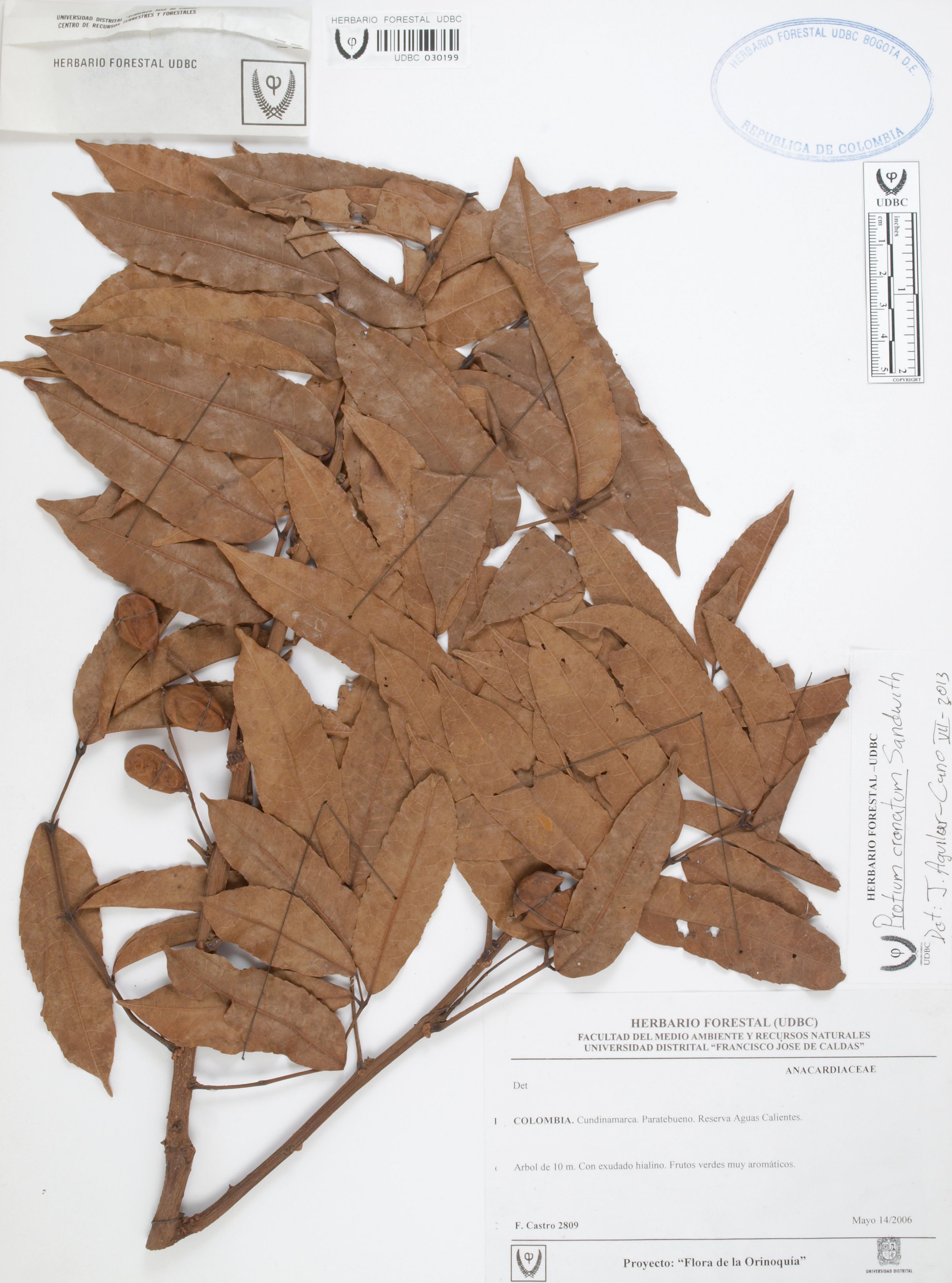 Fotografía del ejemplar Castro, F. 2809, determinado como Protium crenatum en el año 2013