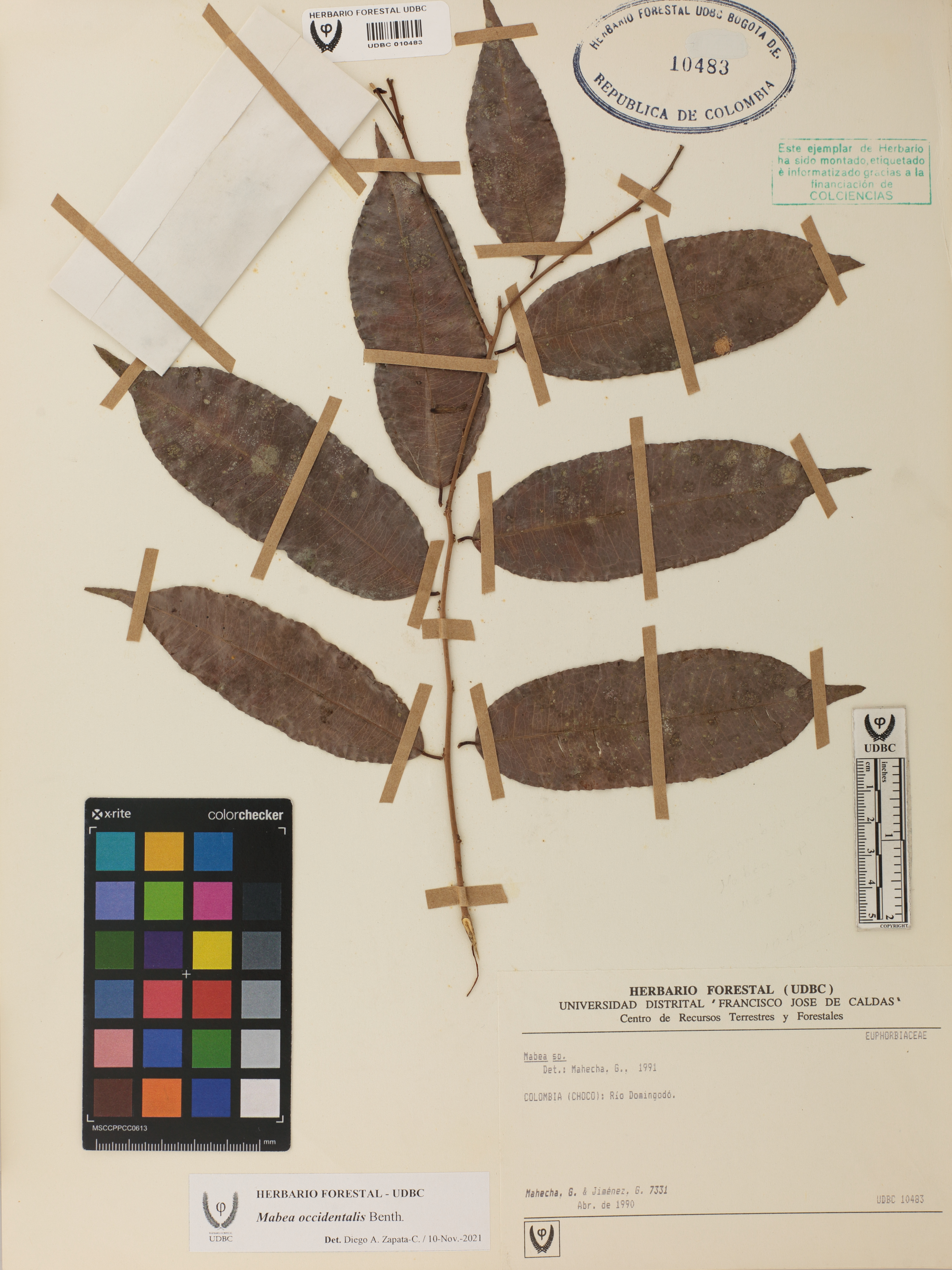 Fotografía del ejemplar Mahecha, G. 7331, determinado como Mabea occidentalis en el año 2021