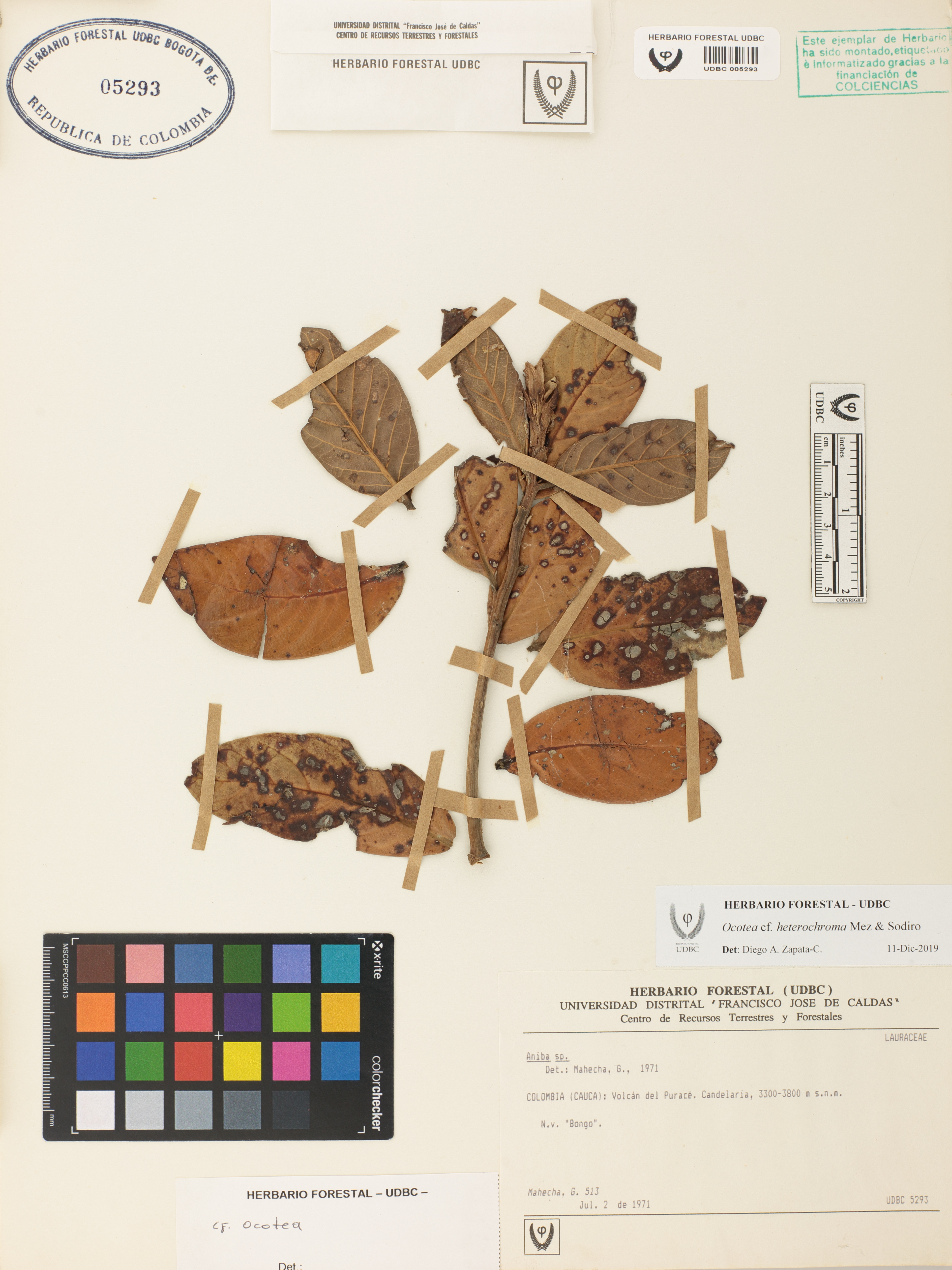 Fotografía del ejemplar Mahecha, G. 513, determinado como Ocotea heterochroma en el año 2019