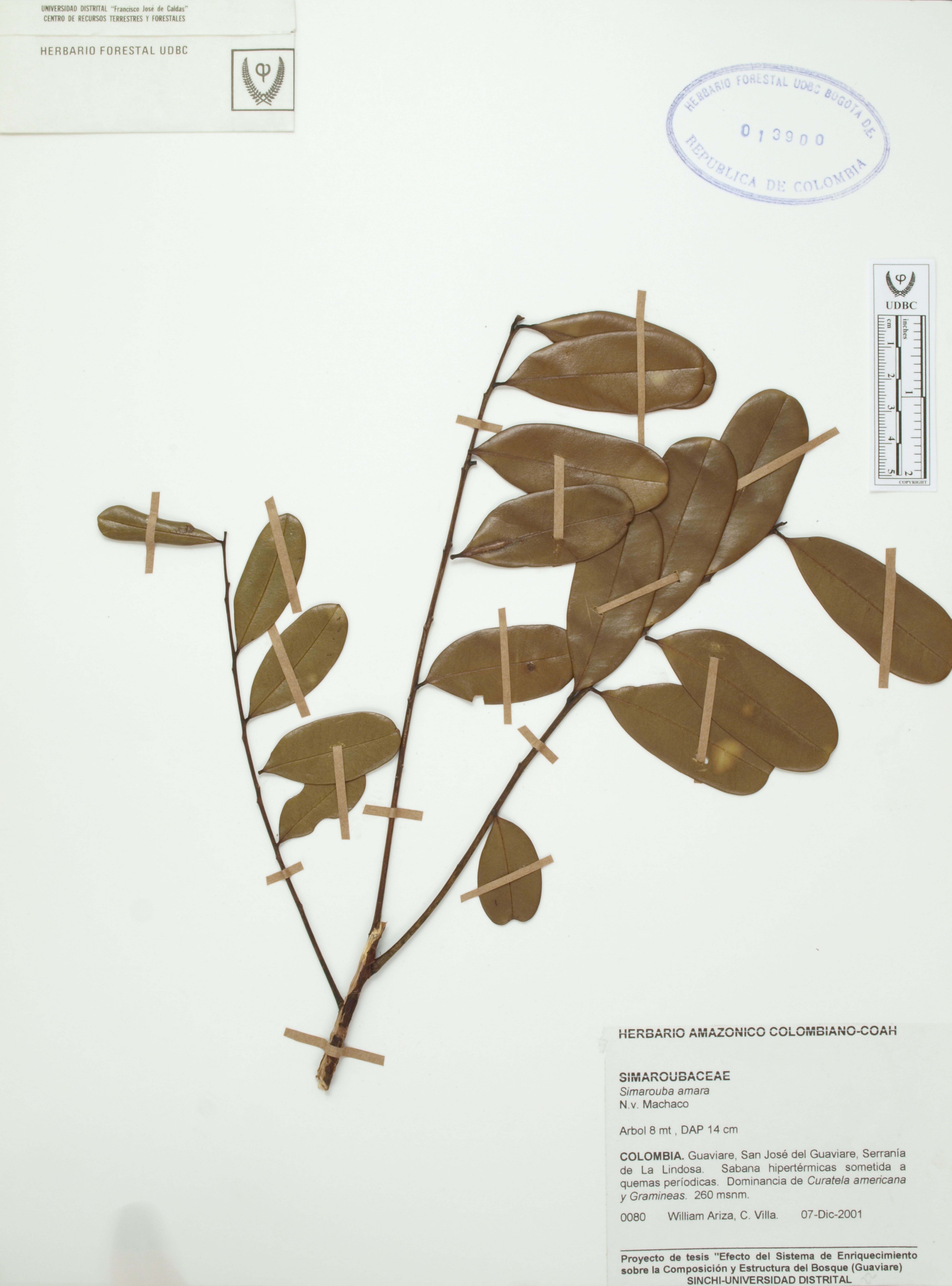 Fotografía del ejemplar Ariza, W. 80, determinado como Simarouba amara