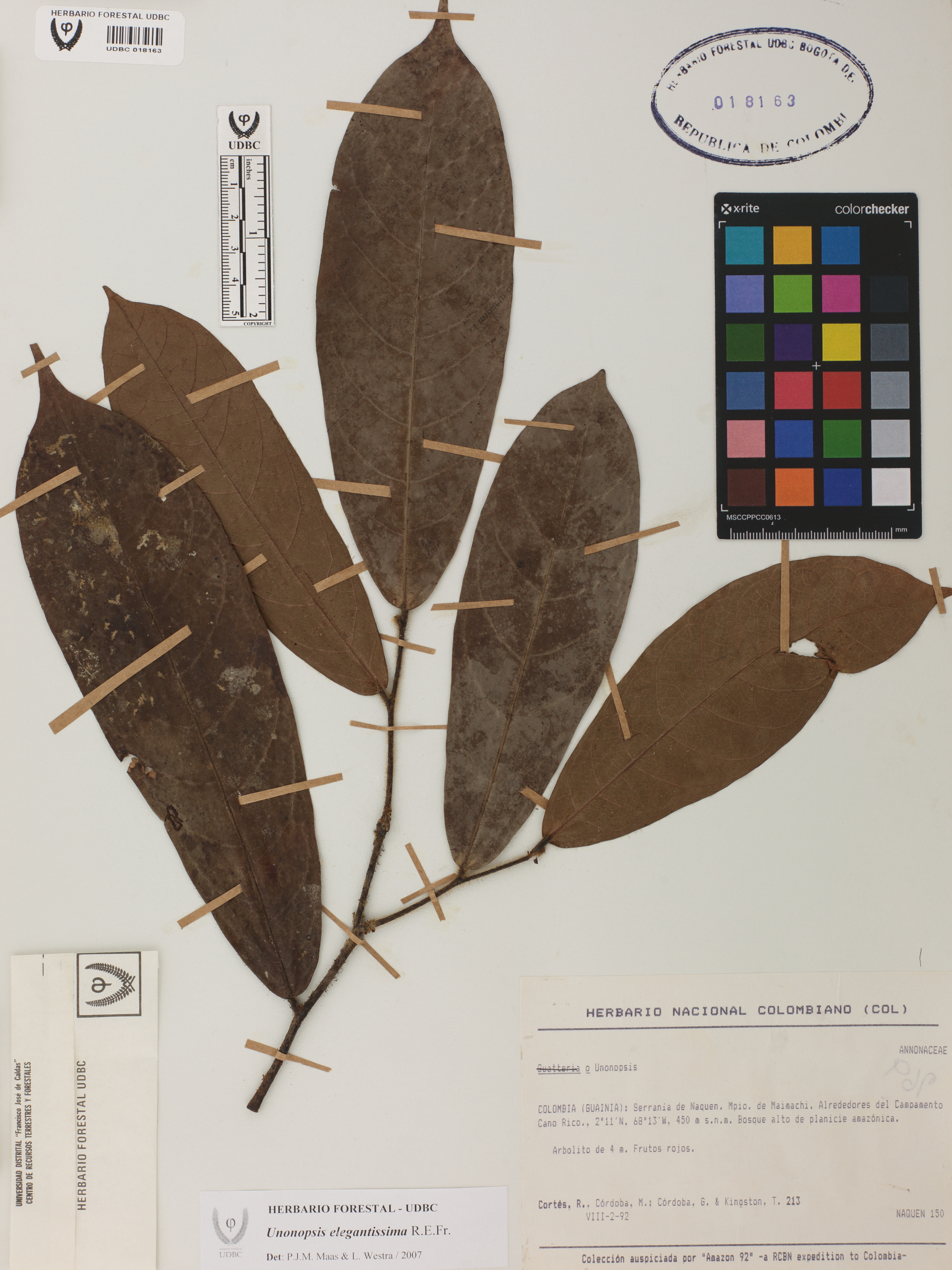 Fotografía del ejemplar Cortés, R. 213, determinado como Unonopsis elegantissima en el año 2007