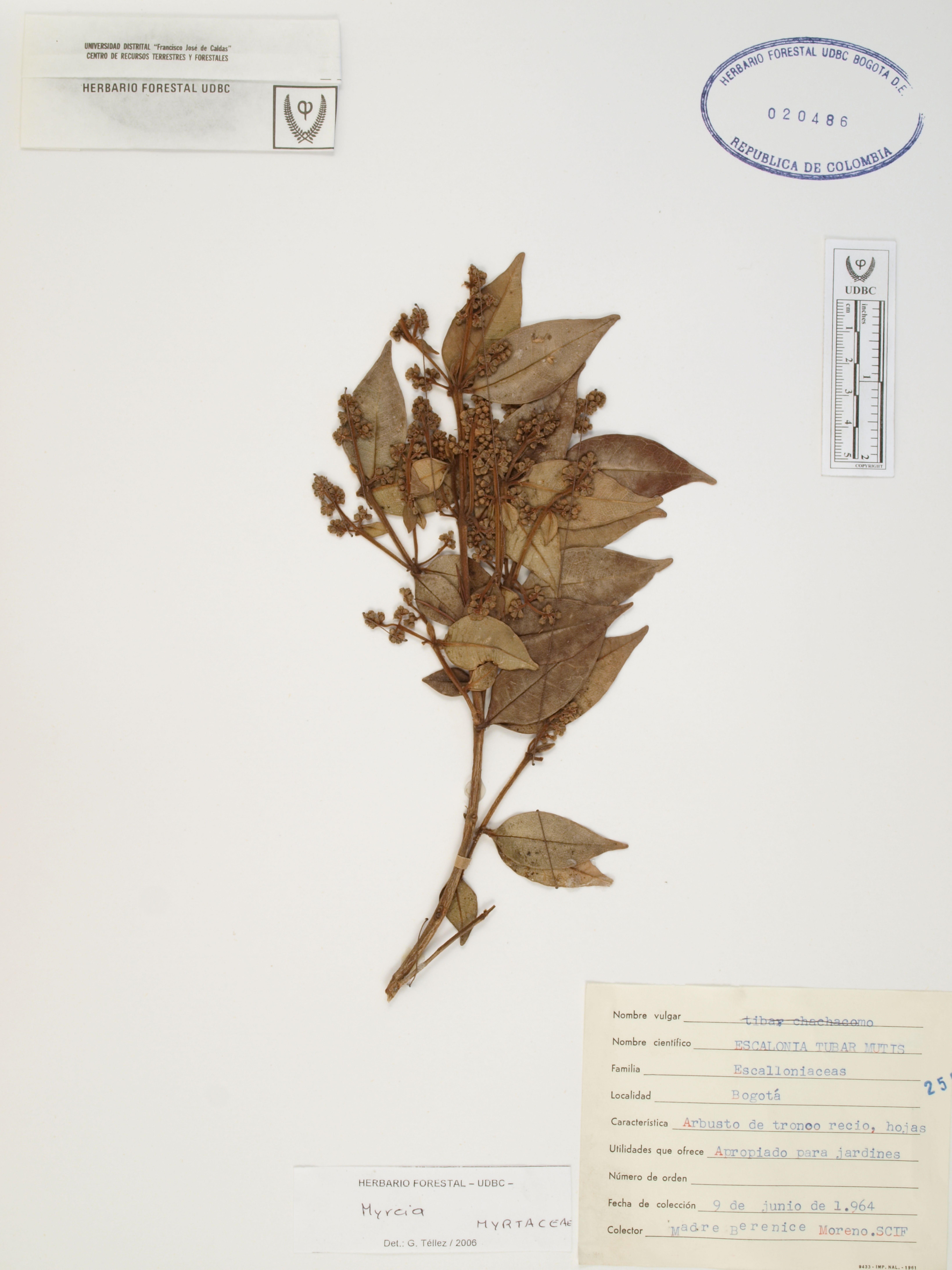 Fotografía del ejemplar Moreno, B., determinado como Myrcia sp. en el año 2006