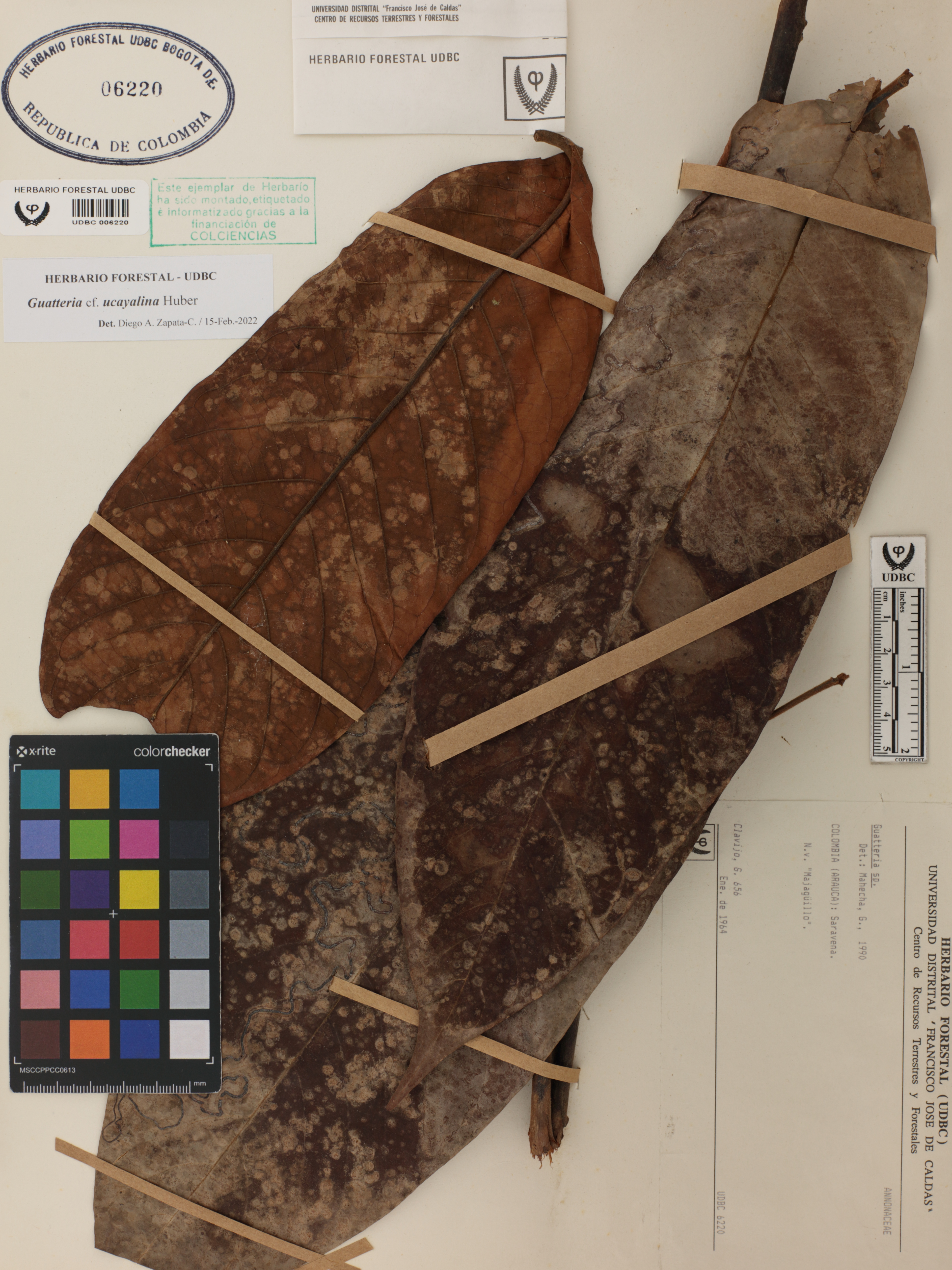 Fotografía del ejemplar Clavijo, G. 656, determinado como Guatteria ucayalina en el año 2022