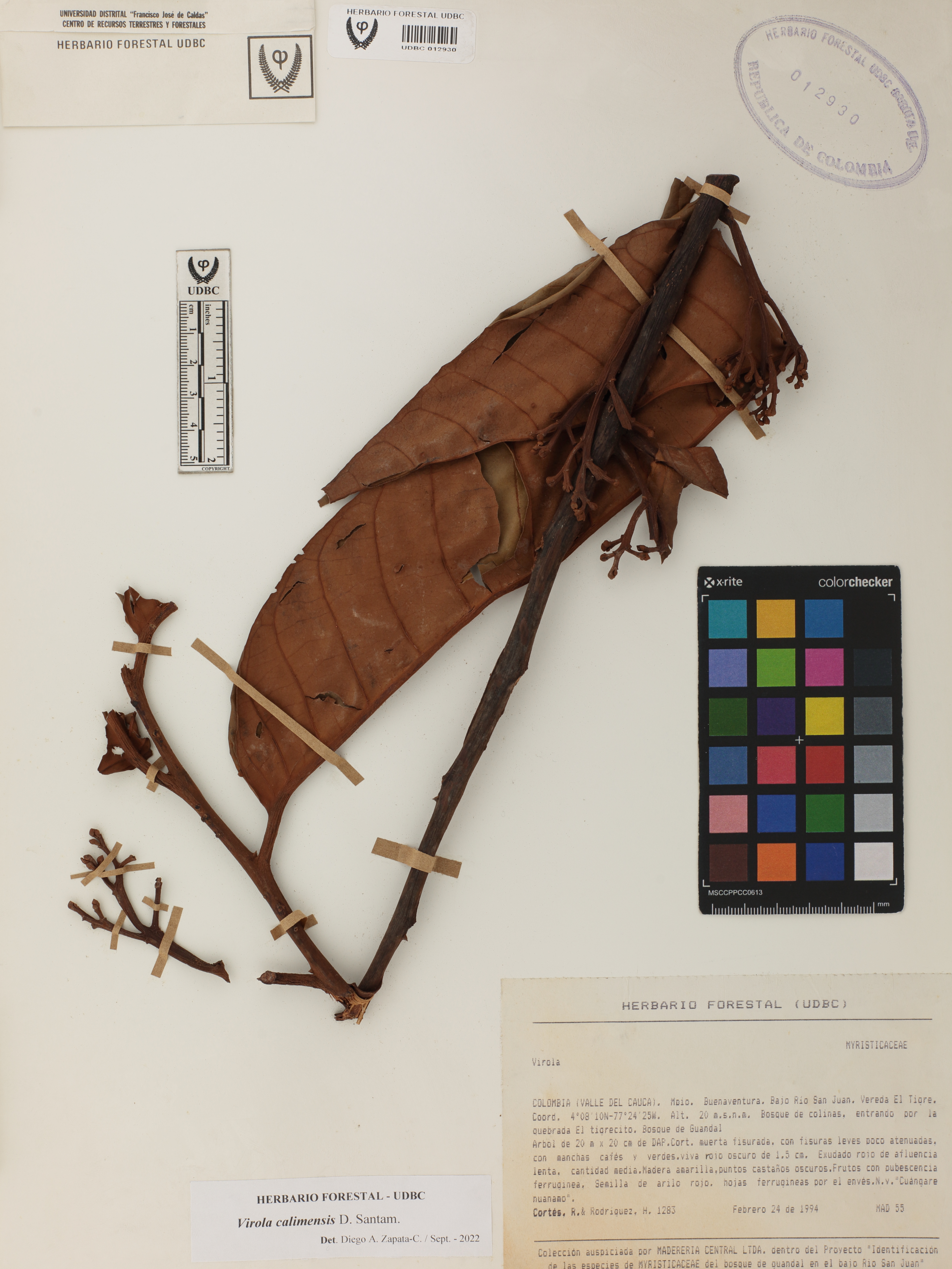 Fotografía del ejemplar Cortés, R. 1283, determinado como Virola calimensis en el año 2022