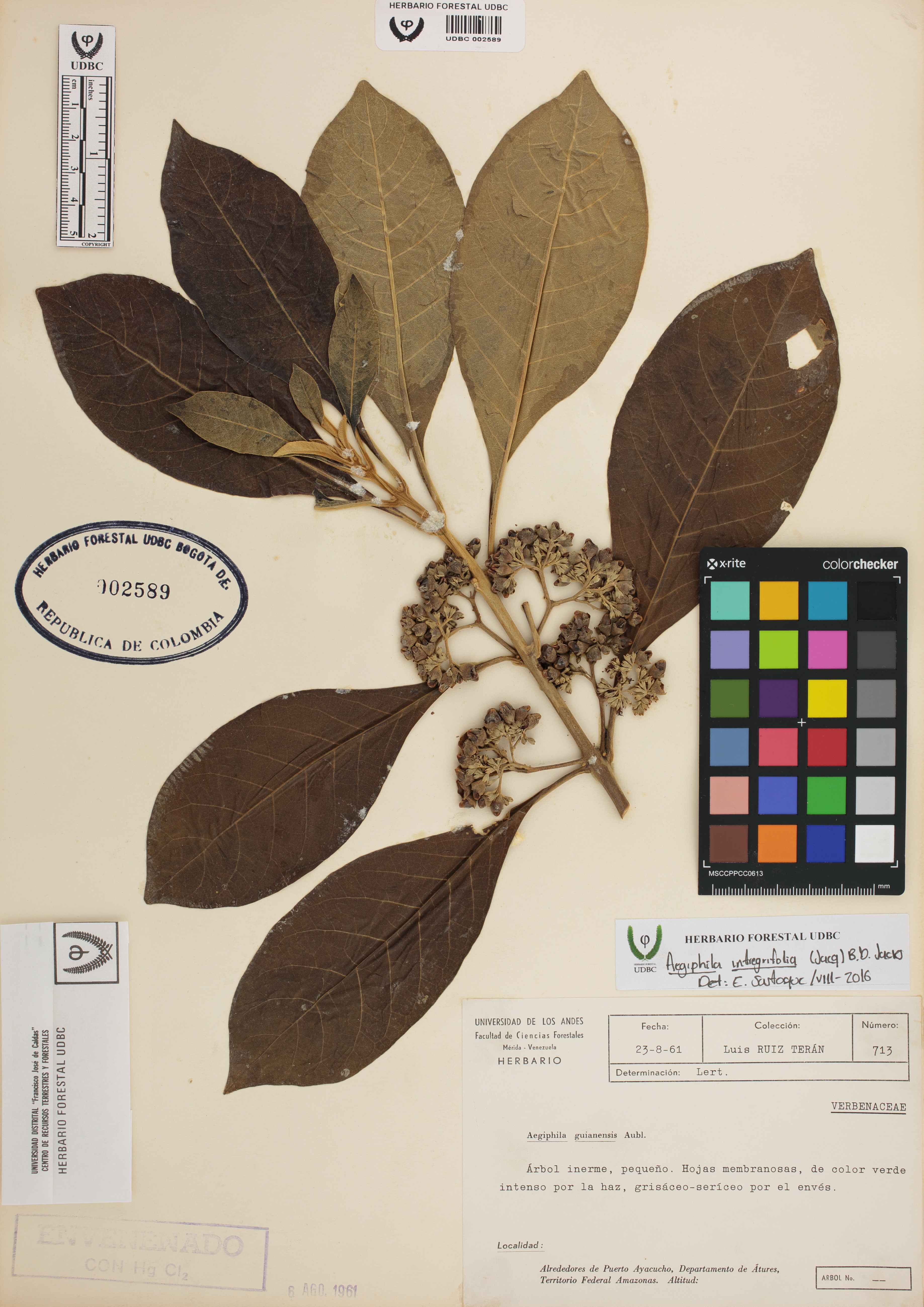 Fotografía del ejemplar Ruiz, L. 713, determinado como Aegiphila integrifolia en el año 2016