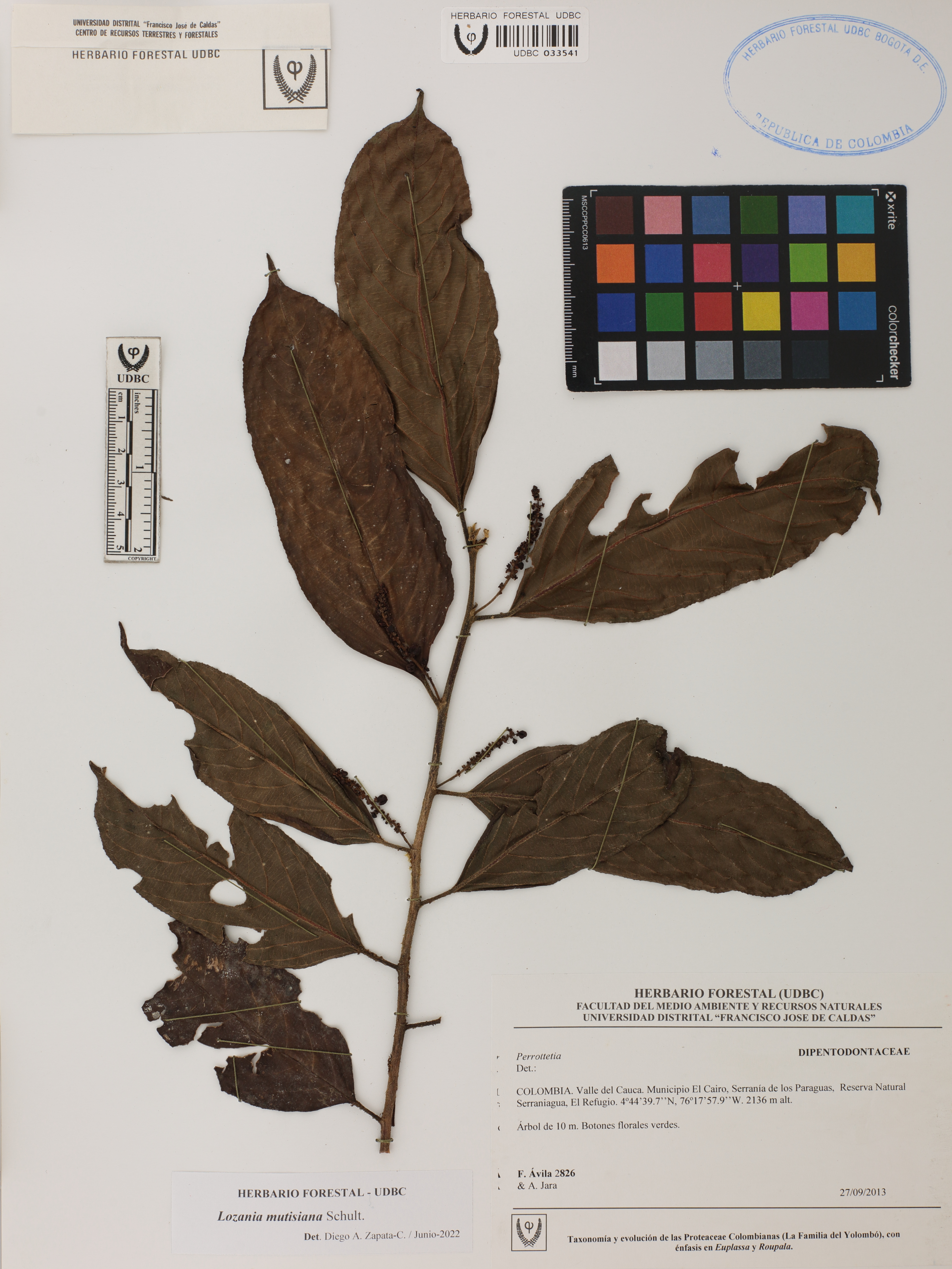 Fotografía del ejemplar Ávila, F. 2826, determinado como Lozania mutisiana en el año 2022