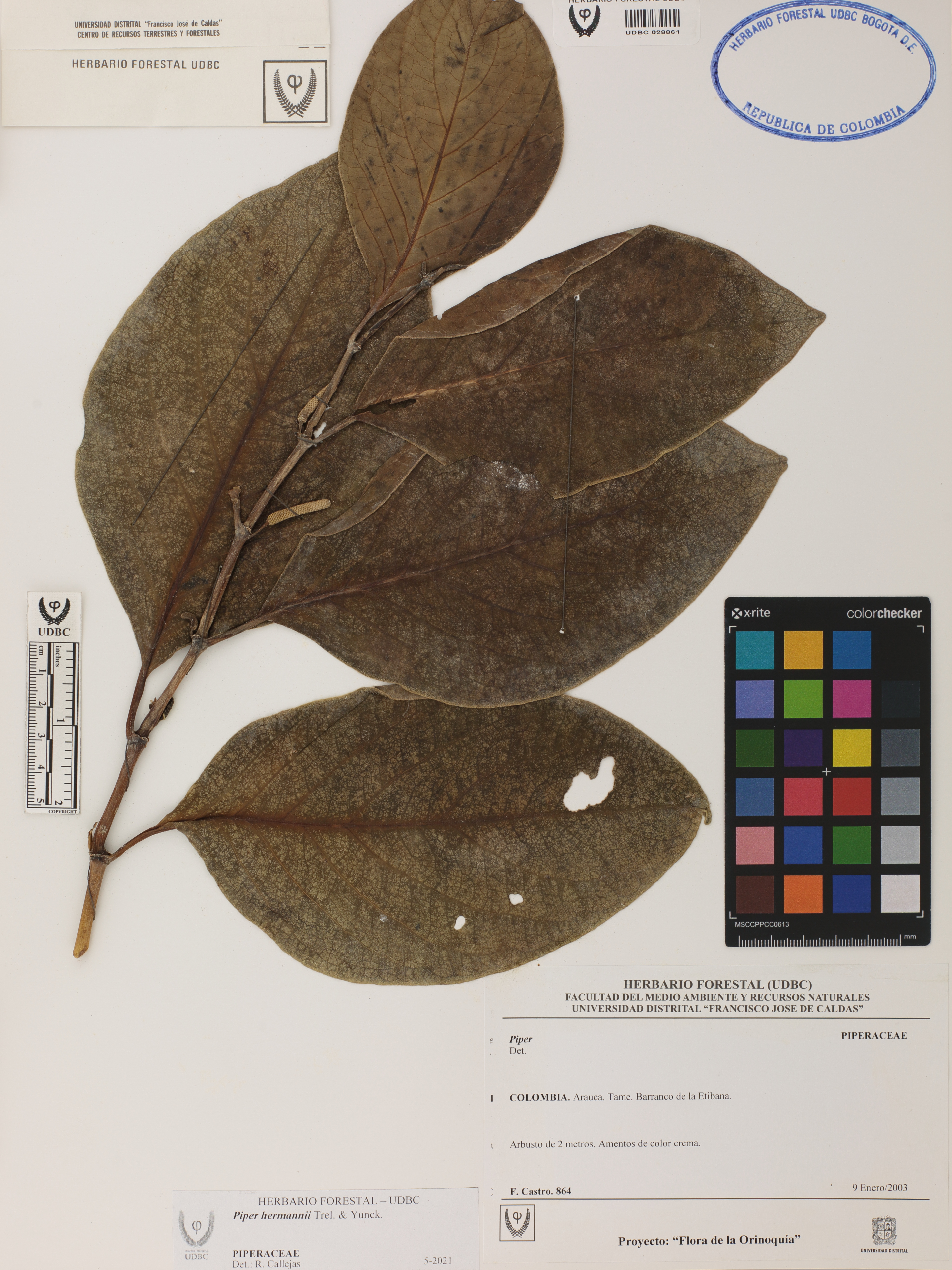 Fotografía del ejemplar Castro, F. 864, determinado como Piper hermannii en el año 2021