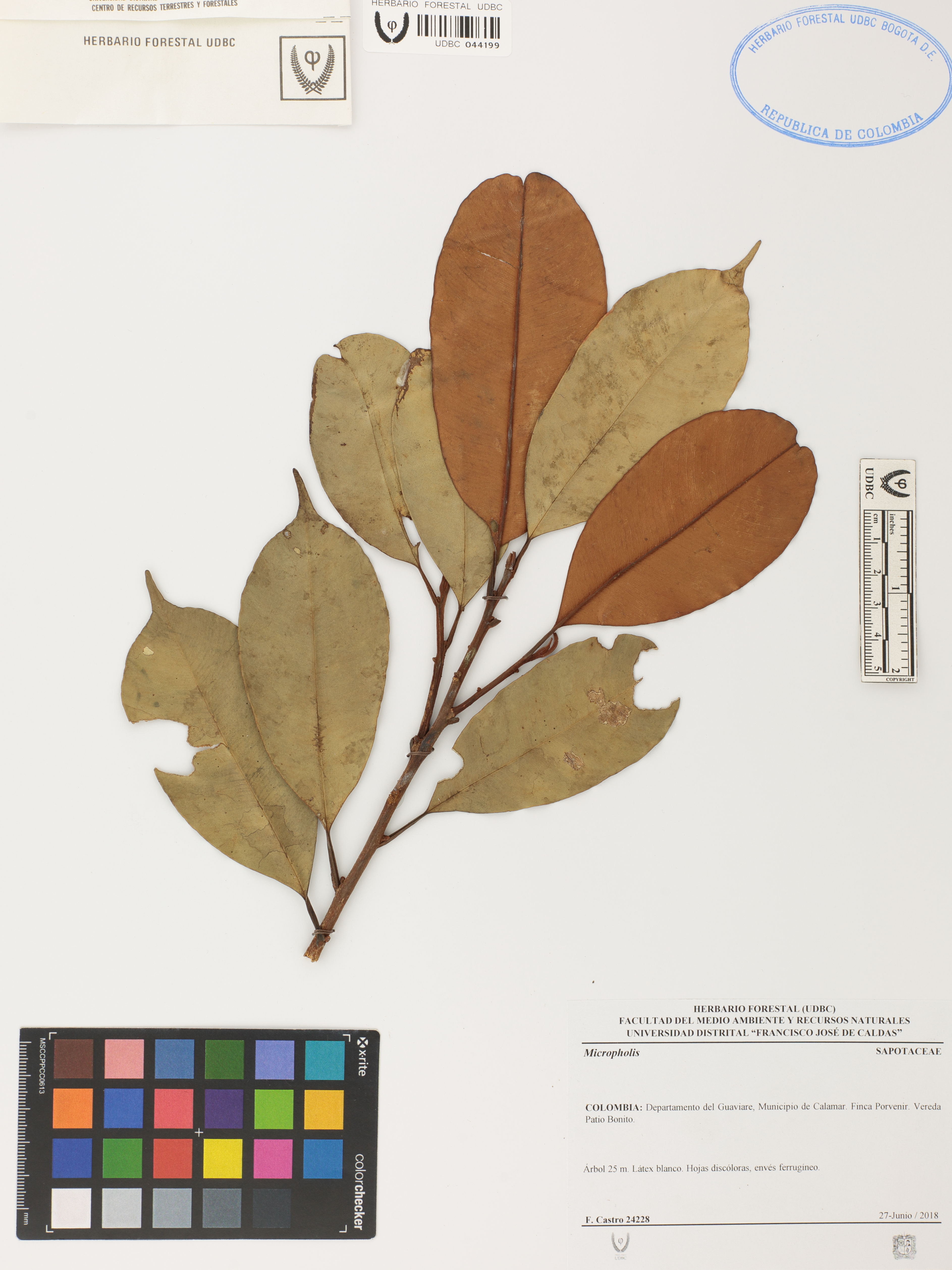Fotografía del ejemplar Castro, F. 24228, determinado como Micropholis sp.