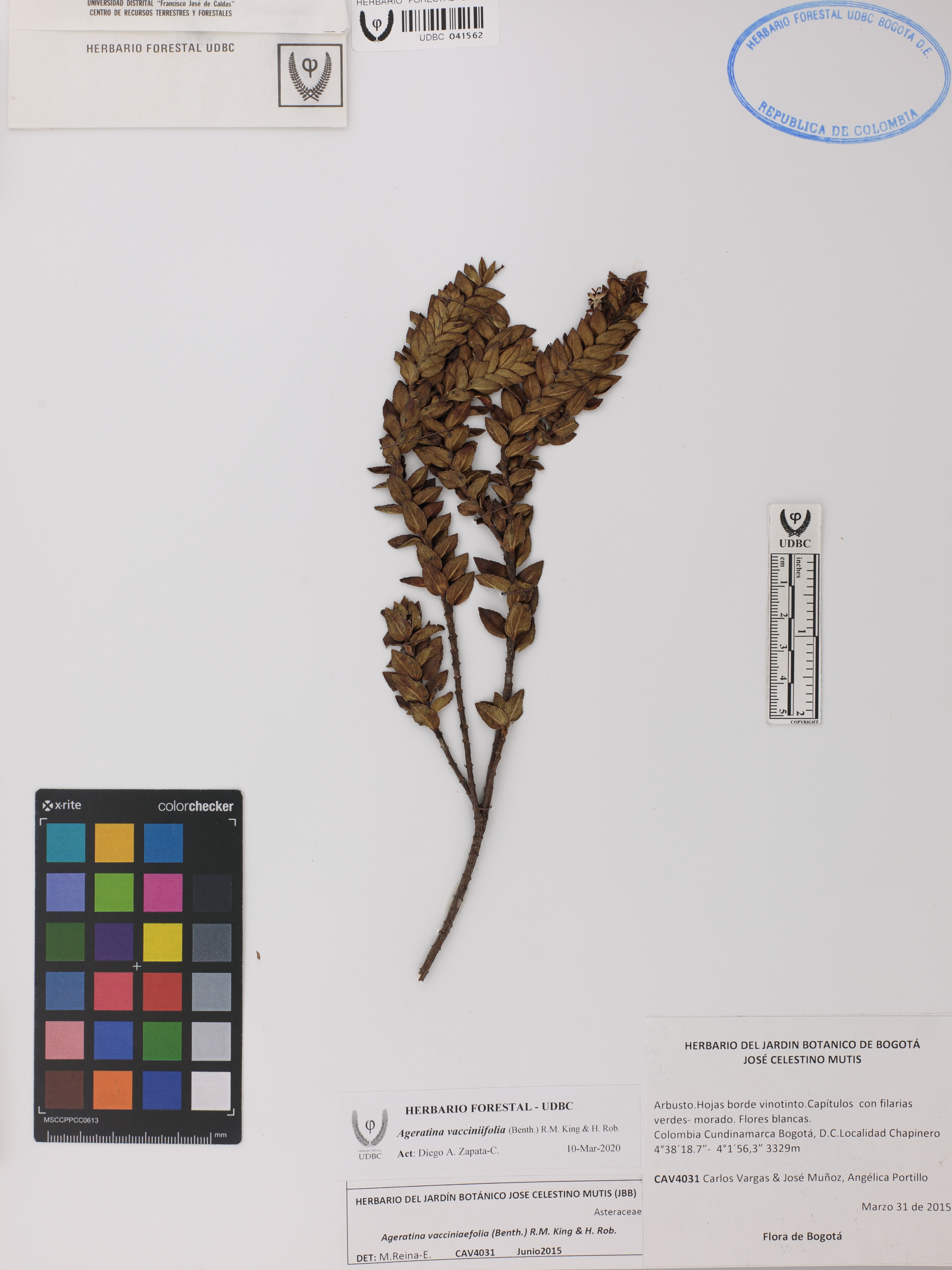 Fotografía del ejemplar Vargas, C. 4031, determinado como Ageratina vacciniifolia en el año 2015