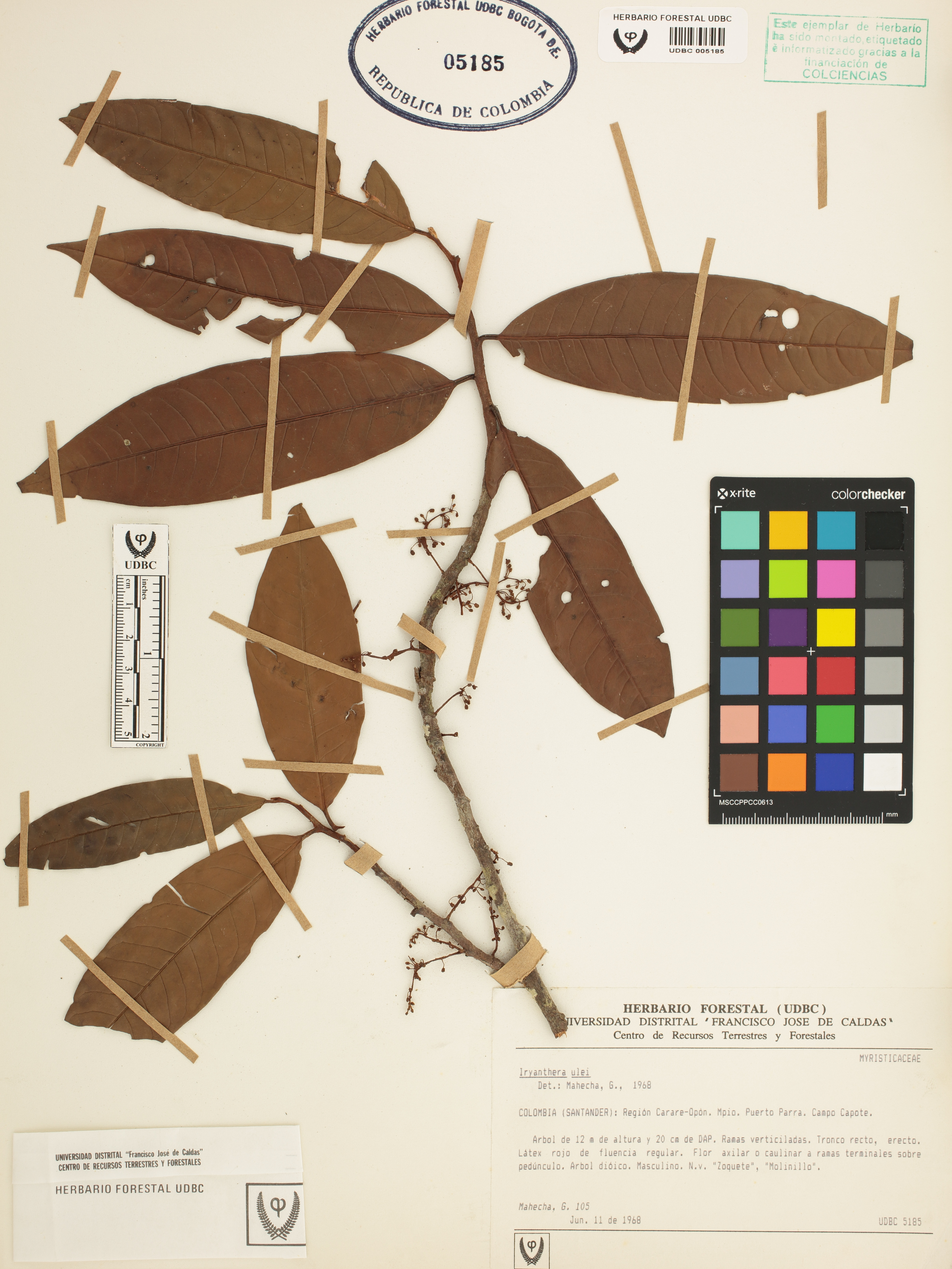 Fotografía del ejemplar Mahecha, G. 105, determinado como Iryanthera hostmannii en el año 1968