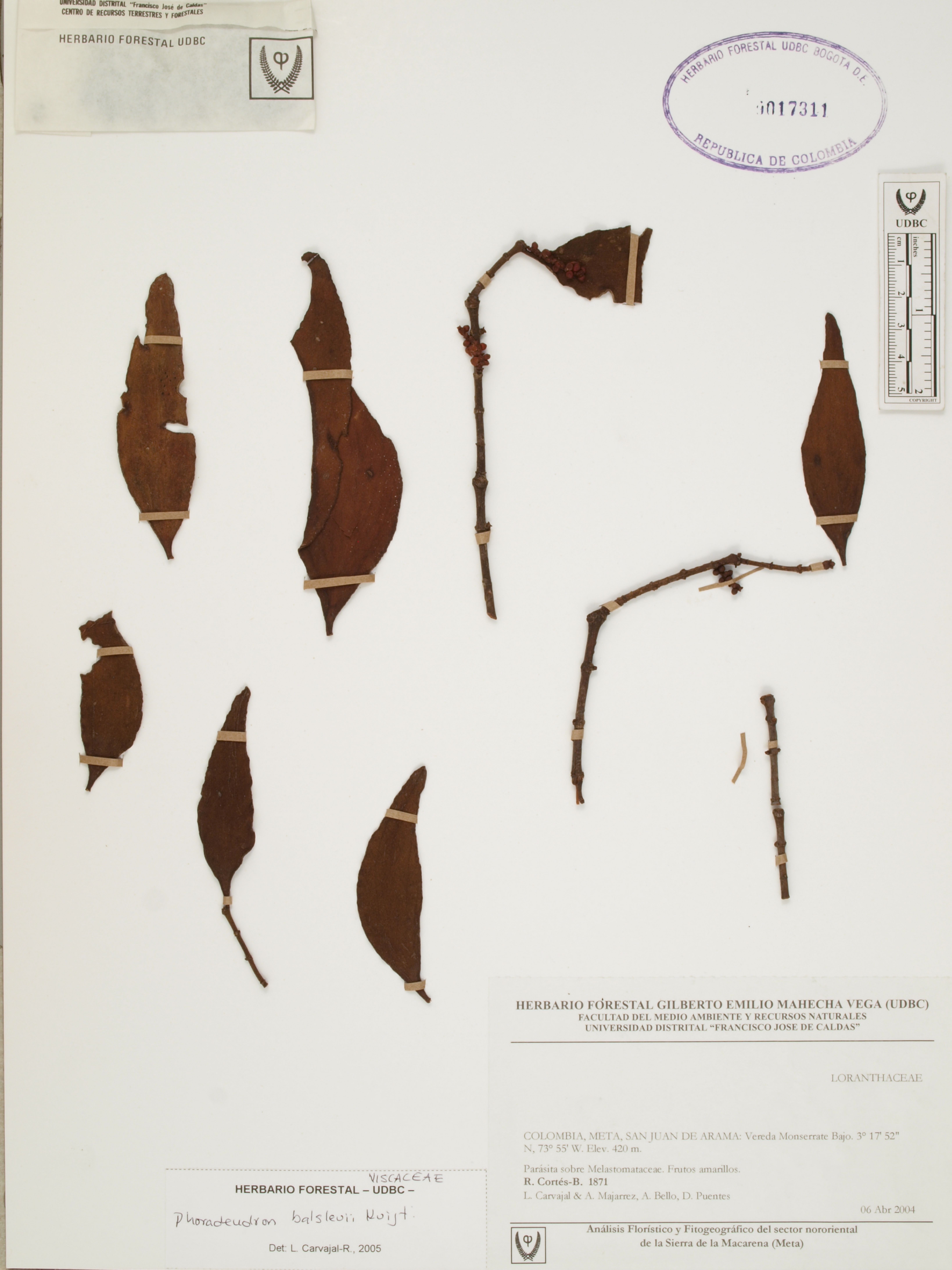 Fotografía del ejemplar Cortés-B., R. 1871, determinado como Phoradendron balslevii en el año 2005