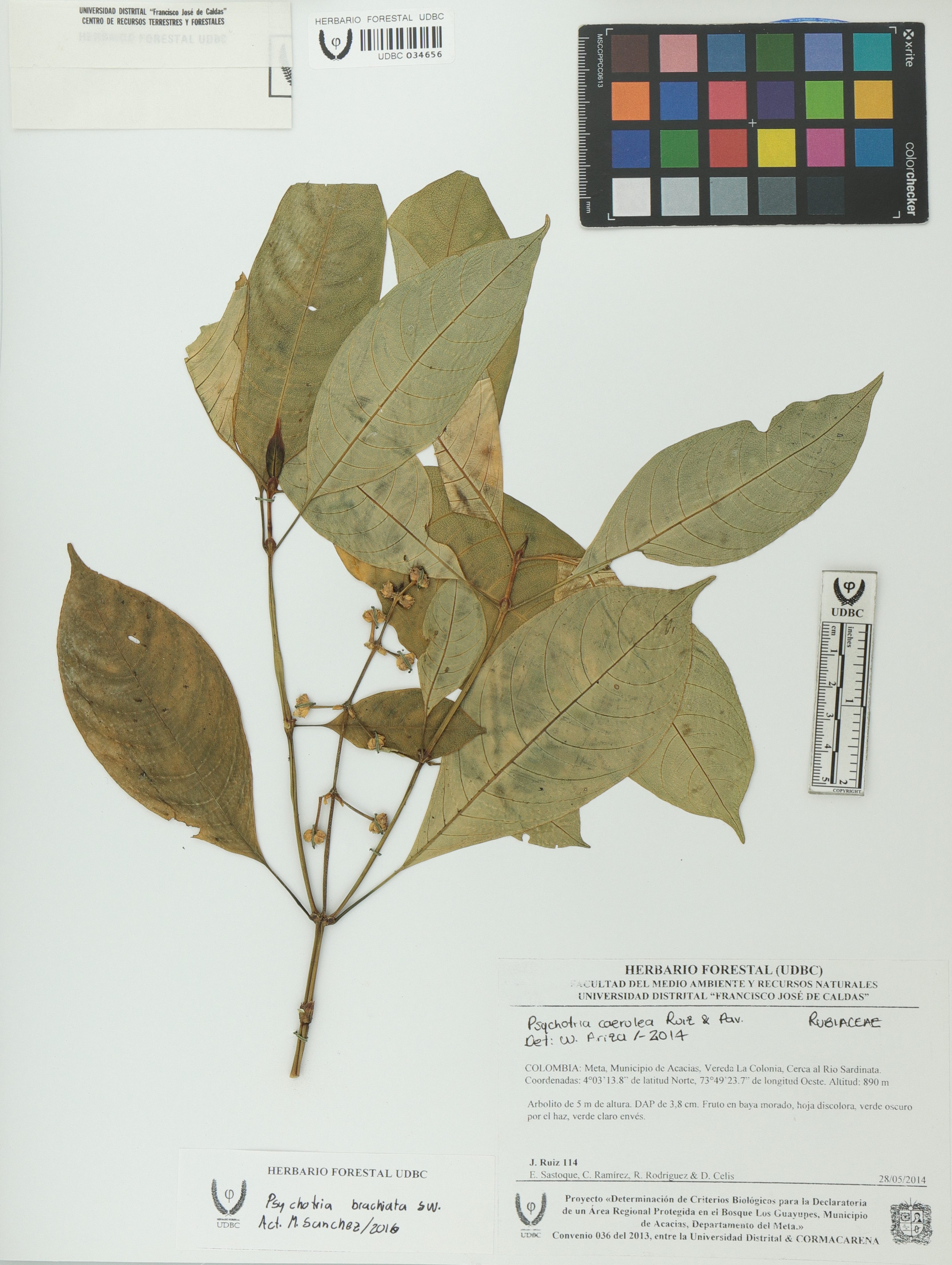 Fotografía del ejemplar Ruiz, J. 114, determinado como Palicourea caerulea en el año 2014