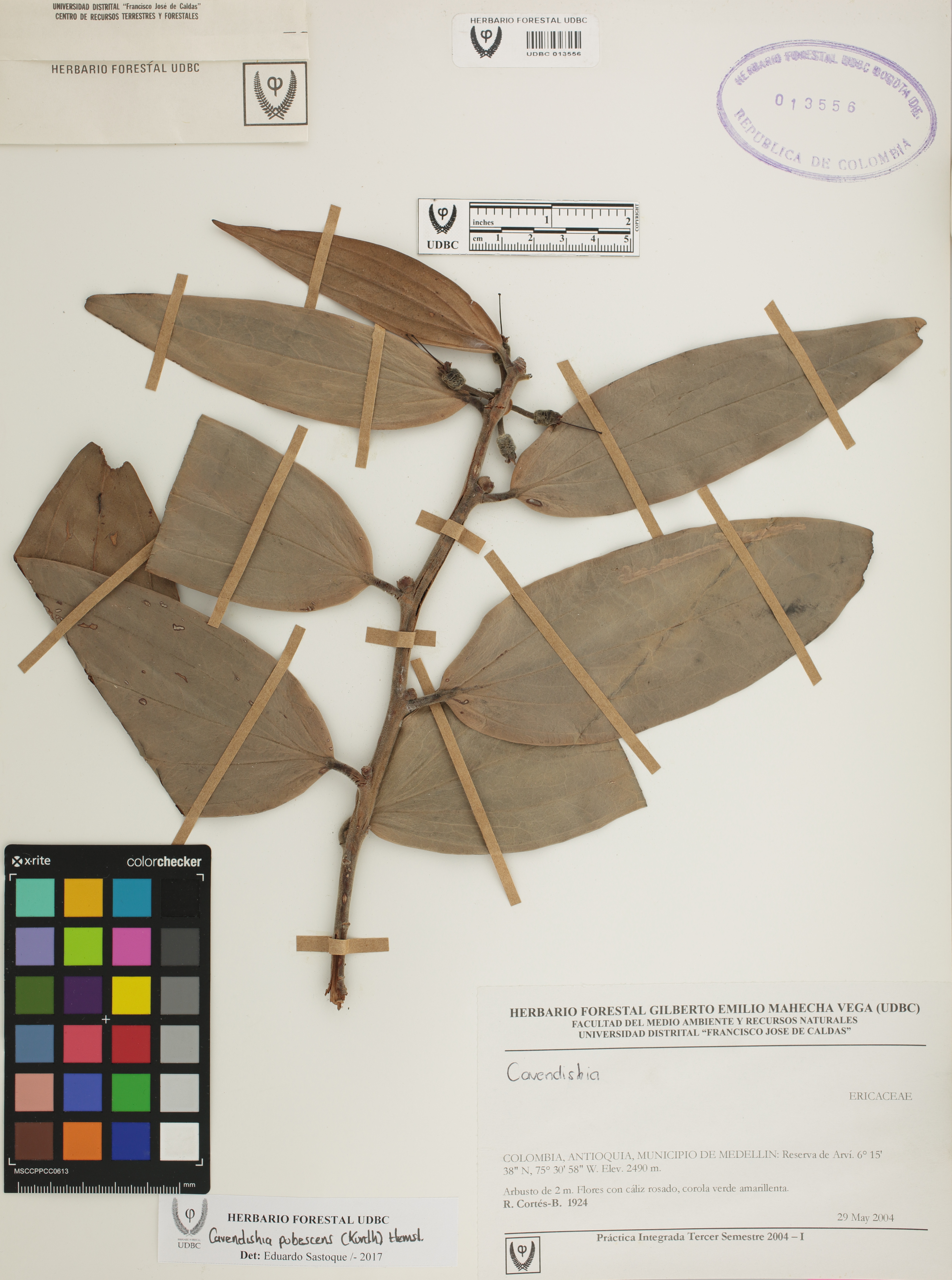 Fotografía del ejemplar Cortés-B., R. 1924, determinado como Cavendishia pubescens en el año 2017