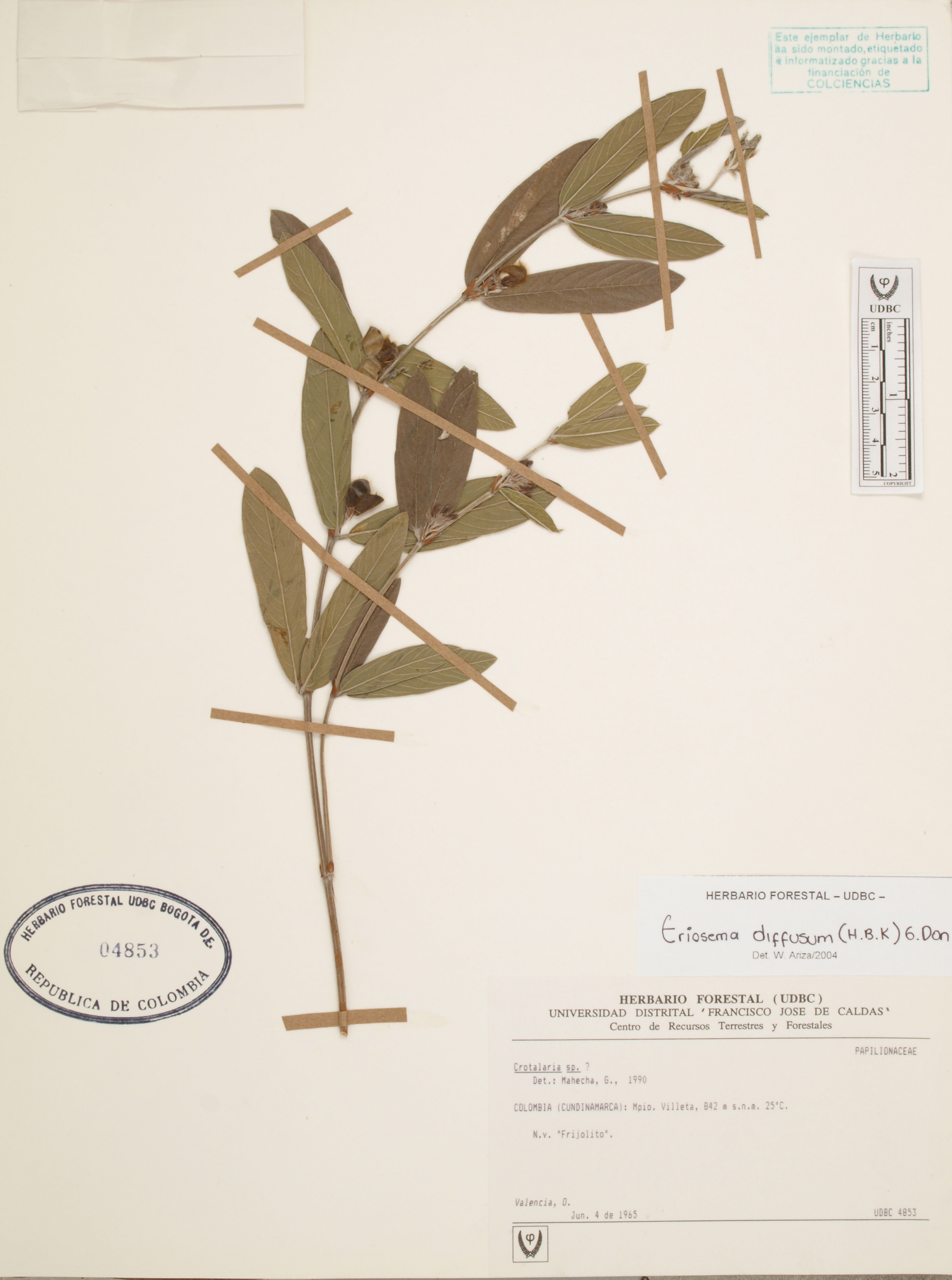Fotografía del ejemplar Valencia, O., determinado como Eriosema diffusum en el año 2004