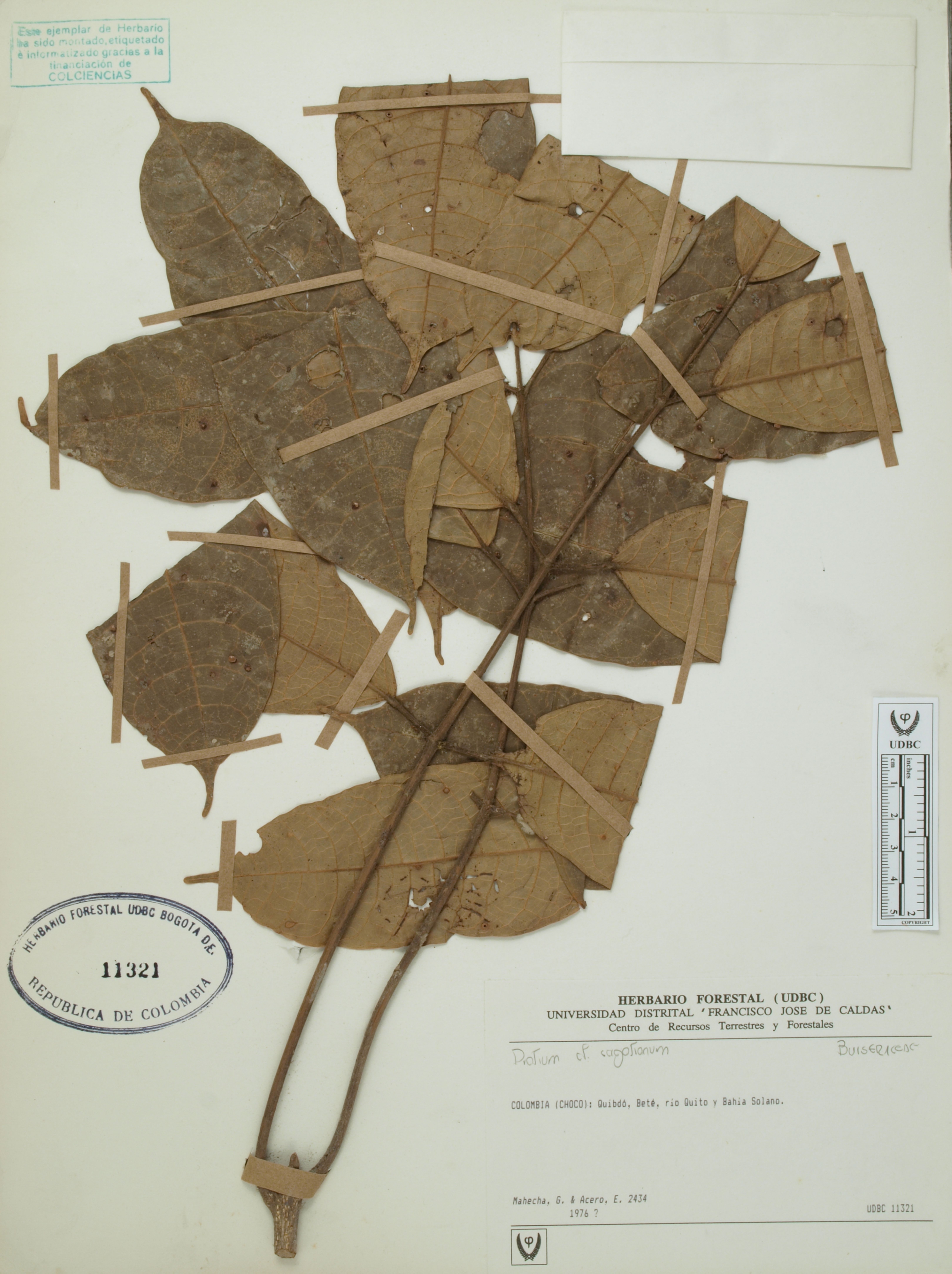 Fotografía del ejemplar Mahecha, G. 2434, determinado como Protium sagotianum