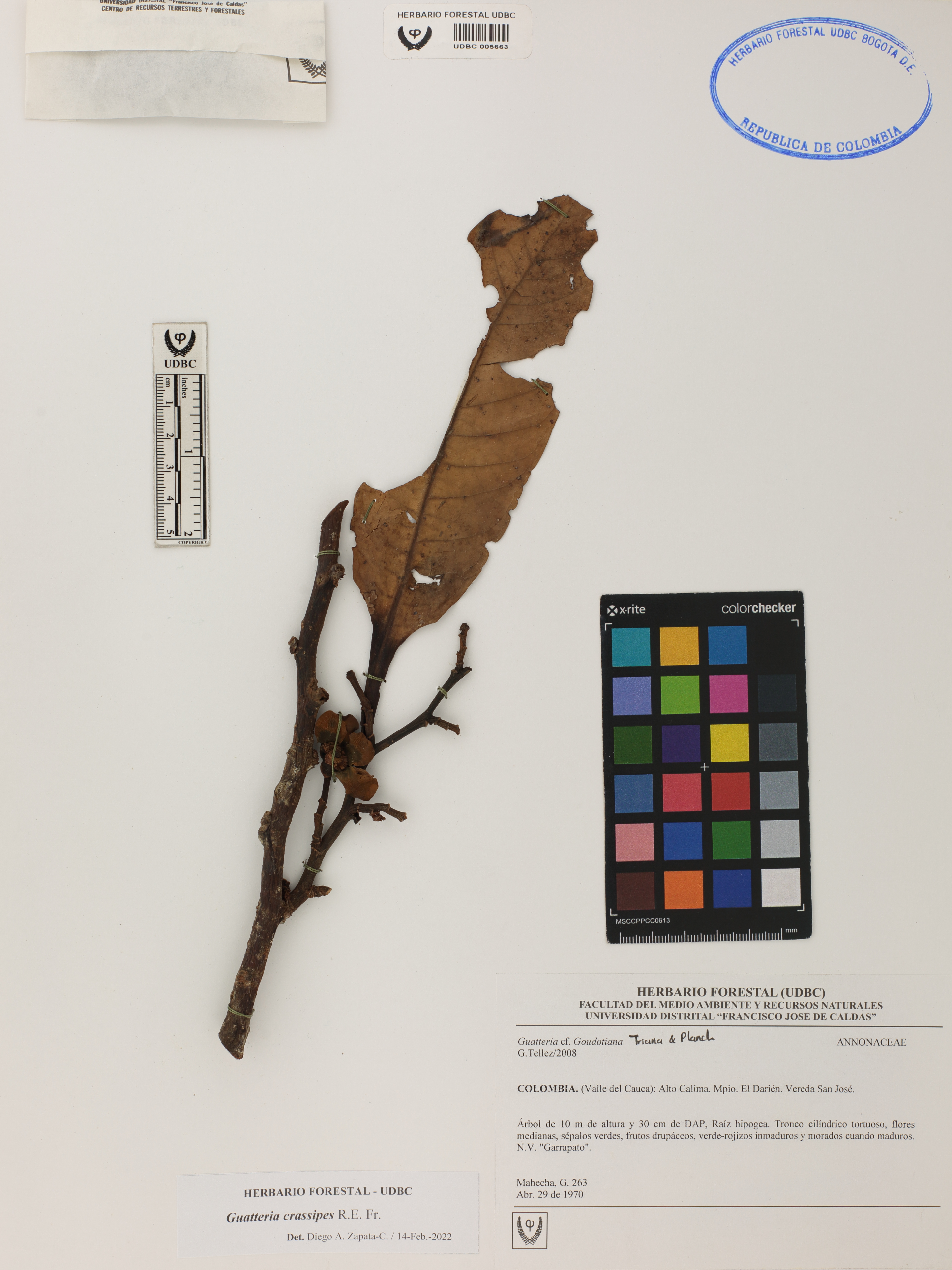 | dc.description | Fotografía del ejemplar Mahecha, G. 263, determinado como Guatteria crassipes en el año 2022 | |