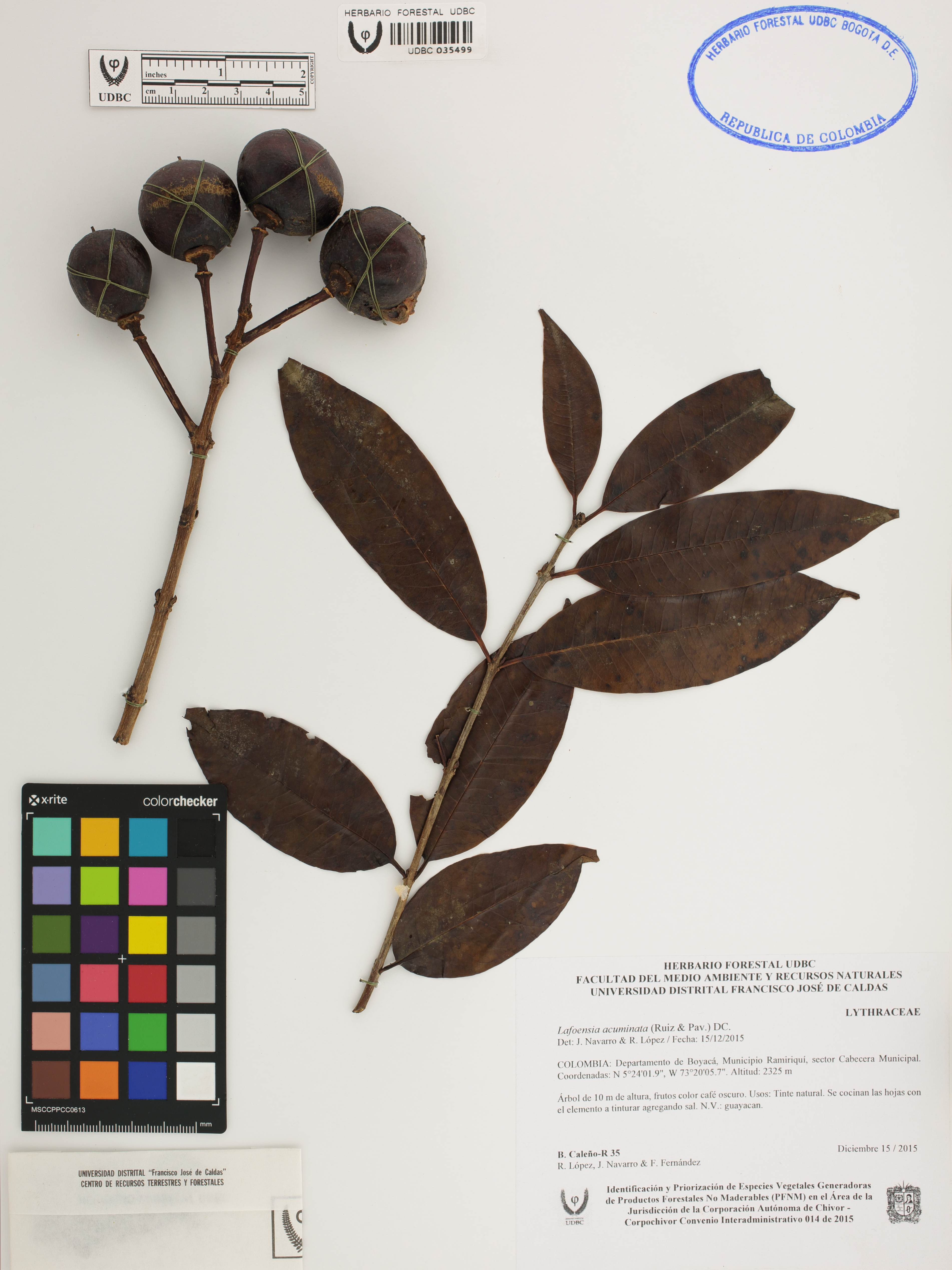 Fotografía del ejemplar Caleño-R., B. 35, determinado como Lafoensia acuminata en el año 2015