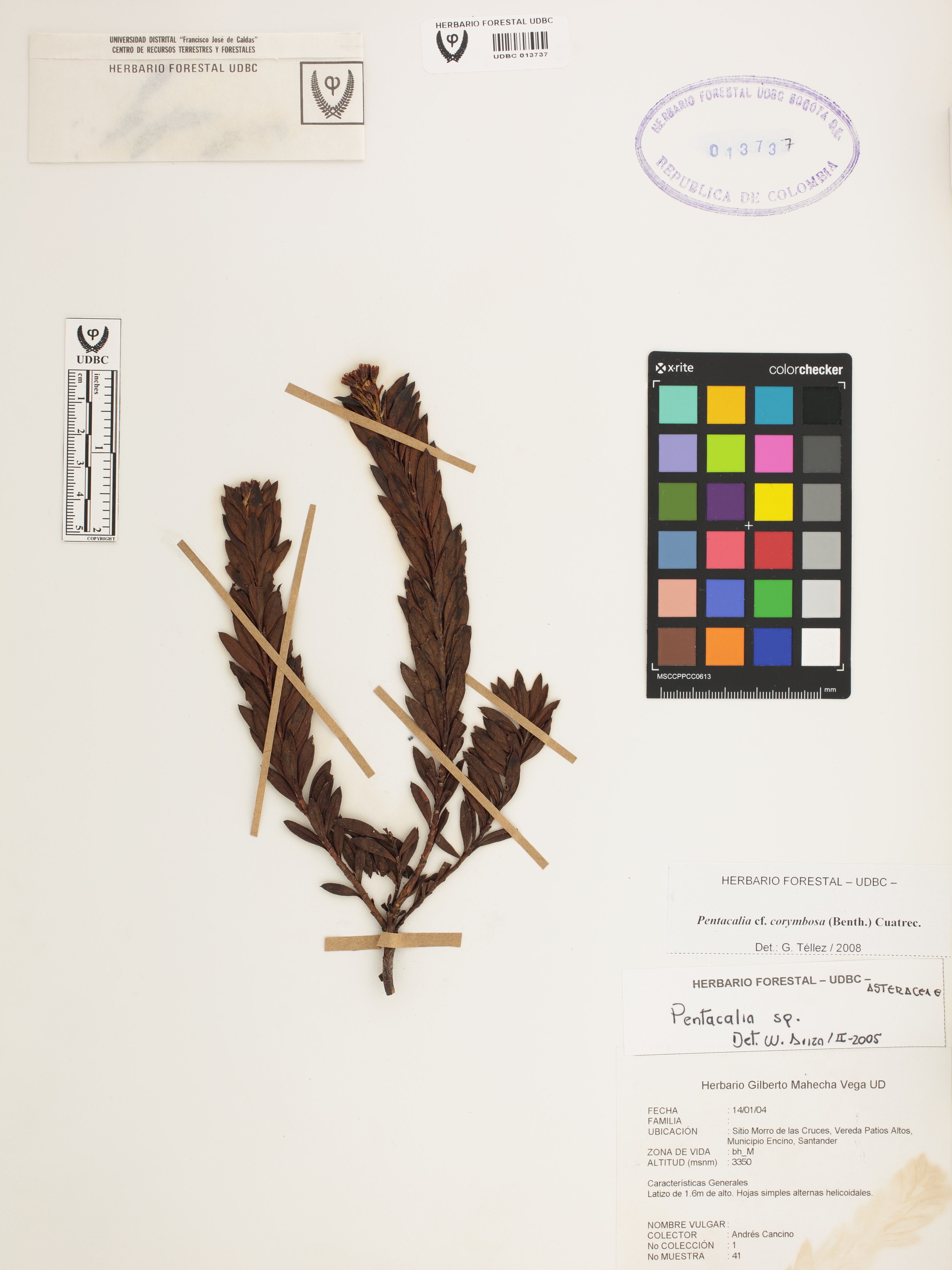 Fotografía del ejemplar Cancino, A. 41, determinado como Pentacalia corymbosa en el año 2008