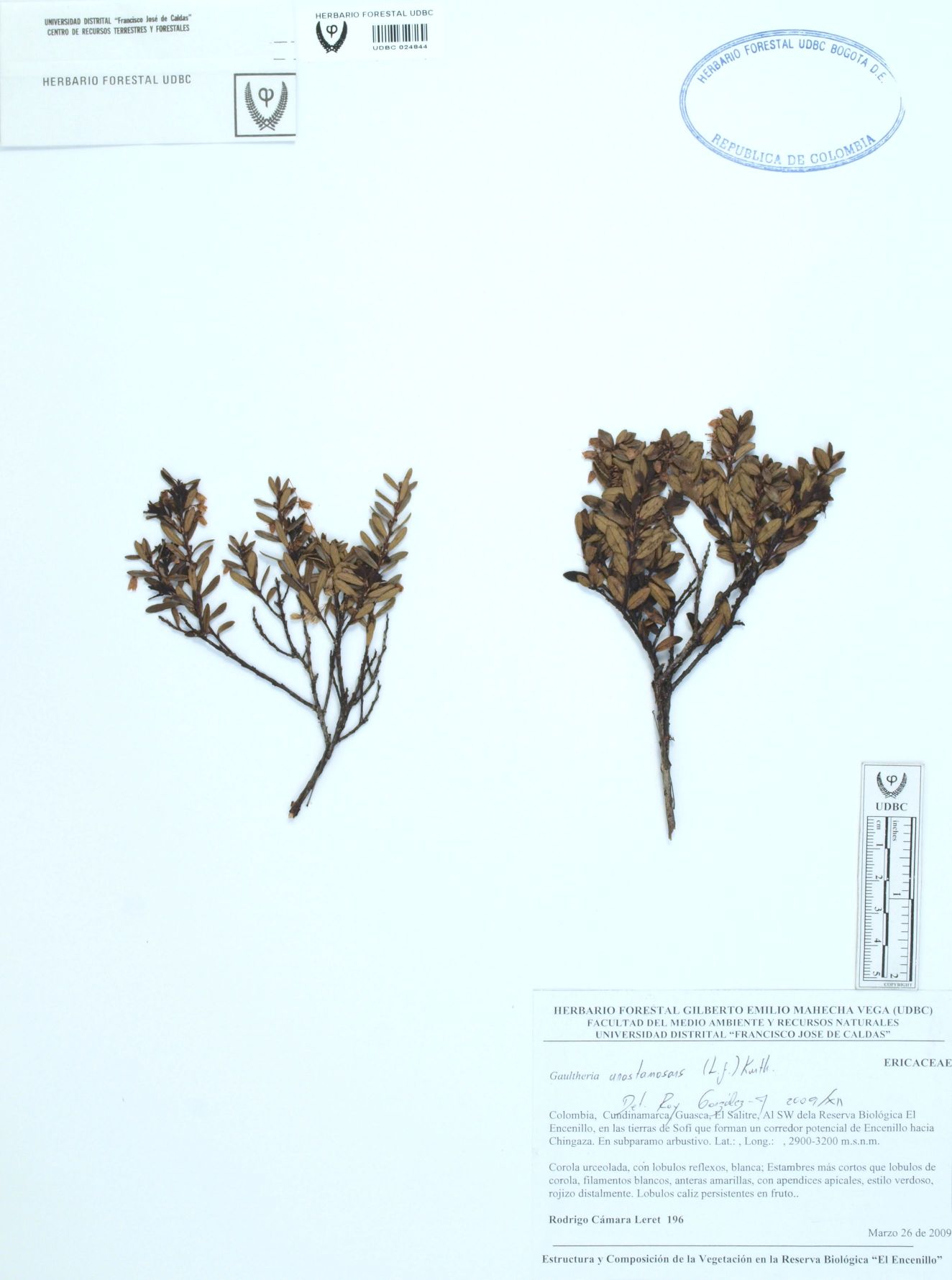 Fotografía del ejemplar Cámara, R. 196, determinado como Pernettya prostrata en el año 2017