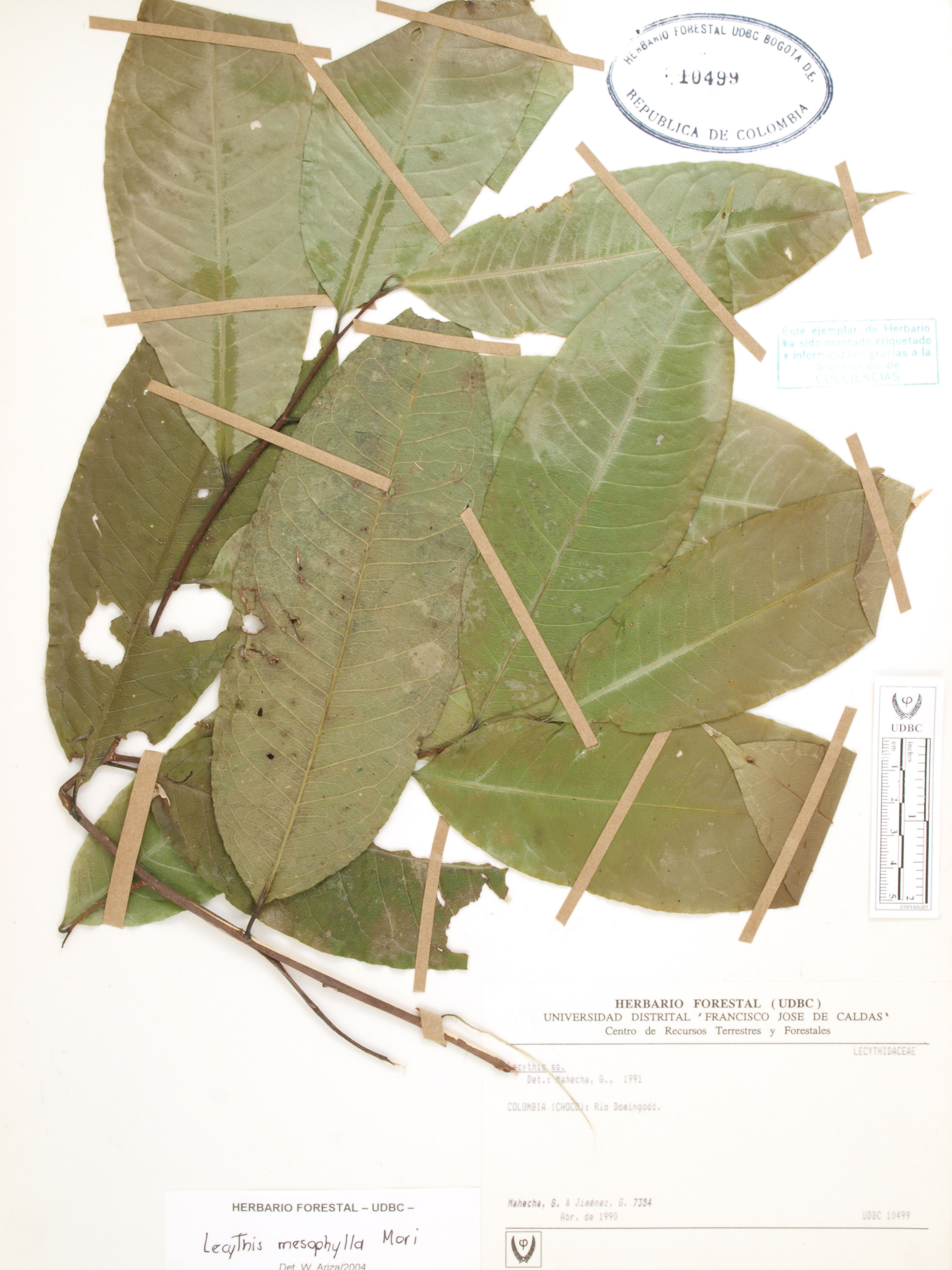 Fotografía del ejemplar Mahecha, G. 7354, determinado como Lecythis mesophylla en el año 2005