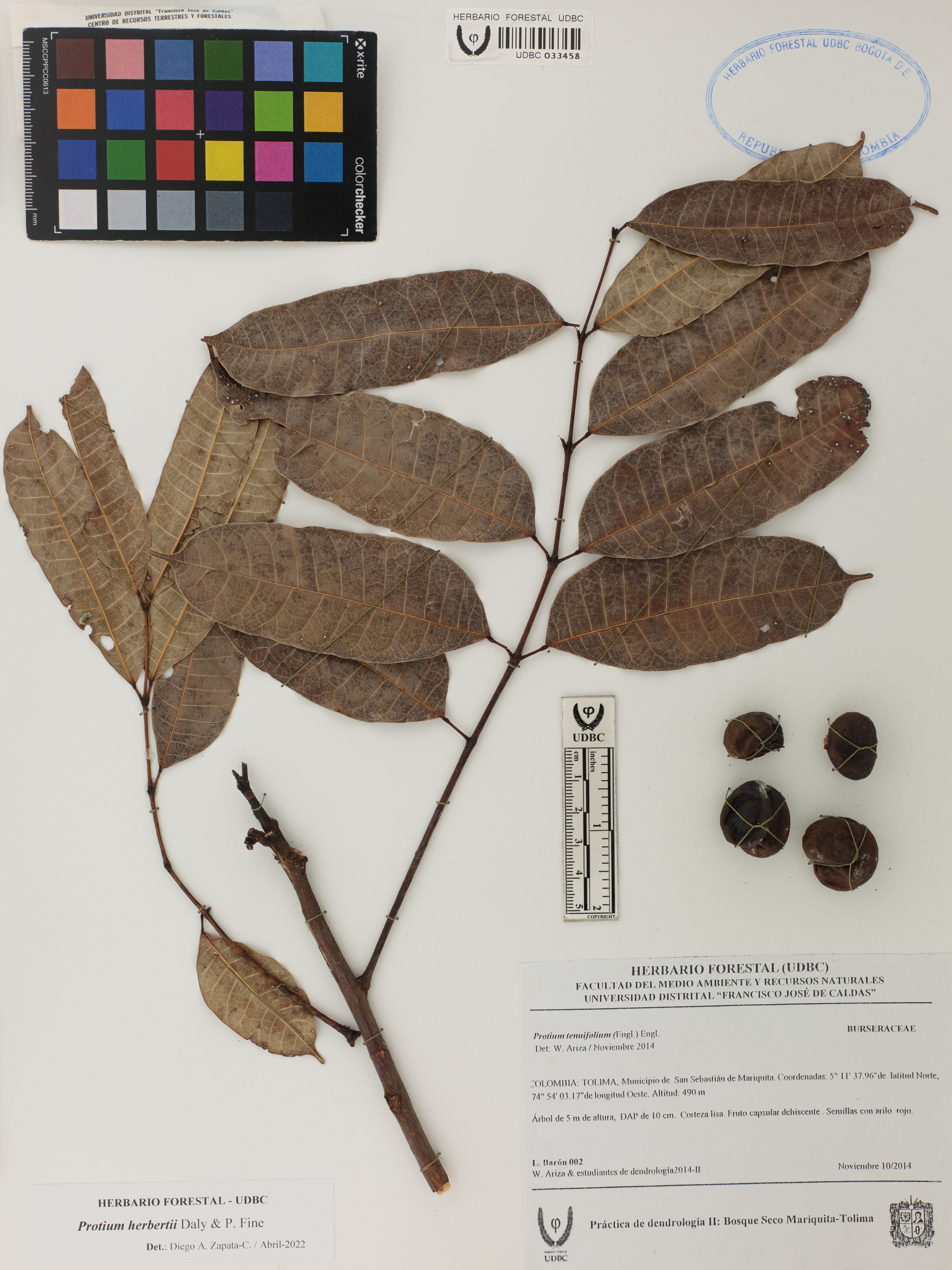 Fotografía del ejemplar Barón, L. 2, determinado como Protium herbertii en el año 2022