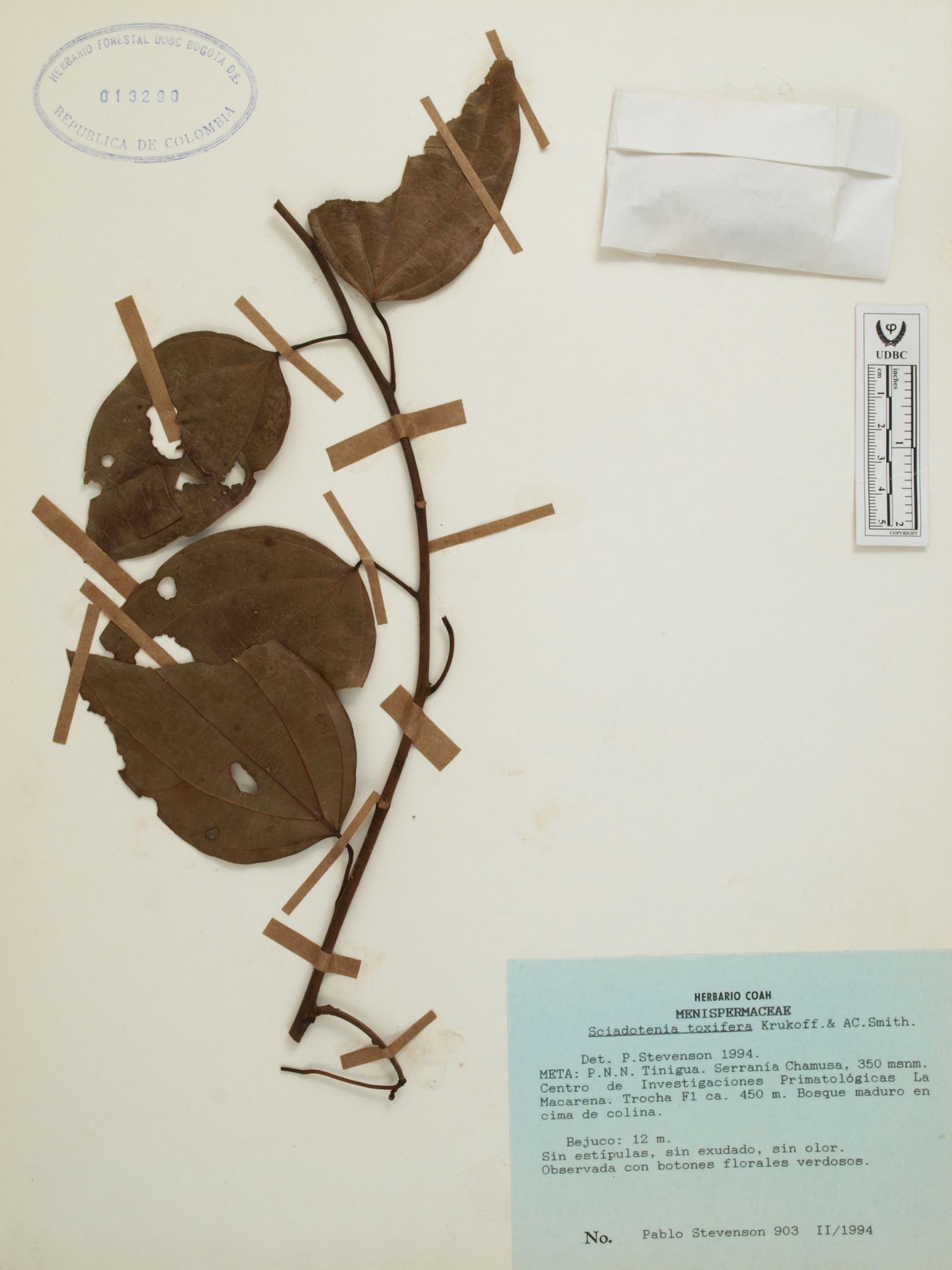Fotografía del ejemplar Stevenson, P. 903, determinado como Sciadotenia toxifera en el año 1994