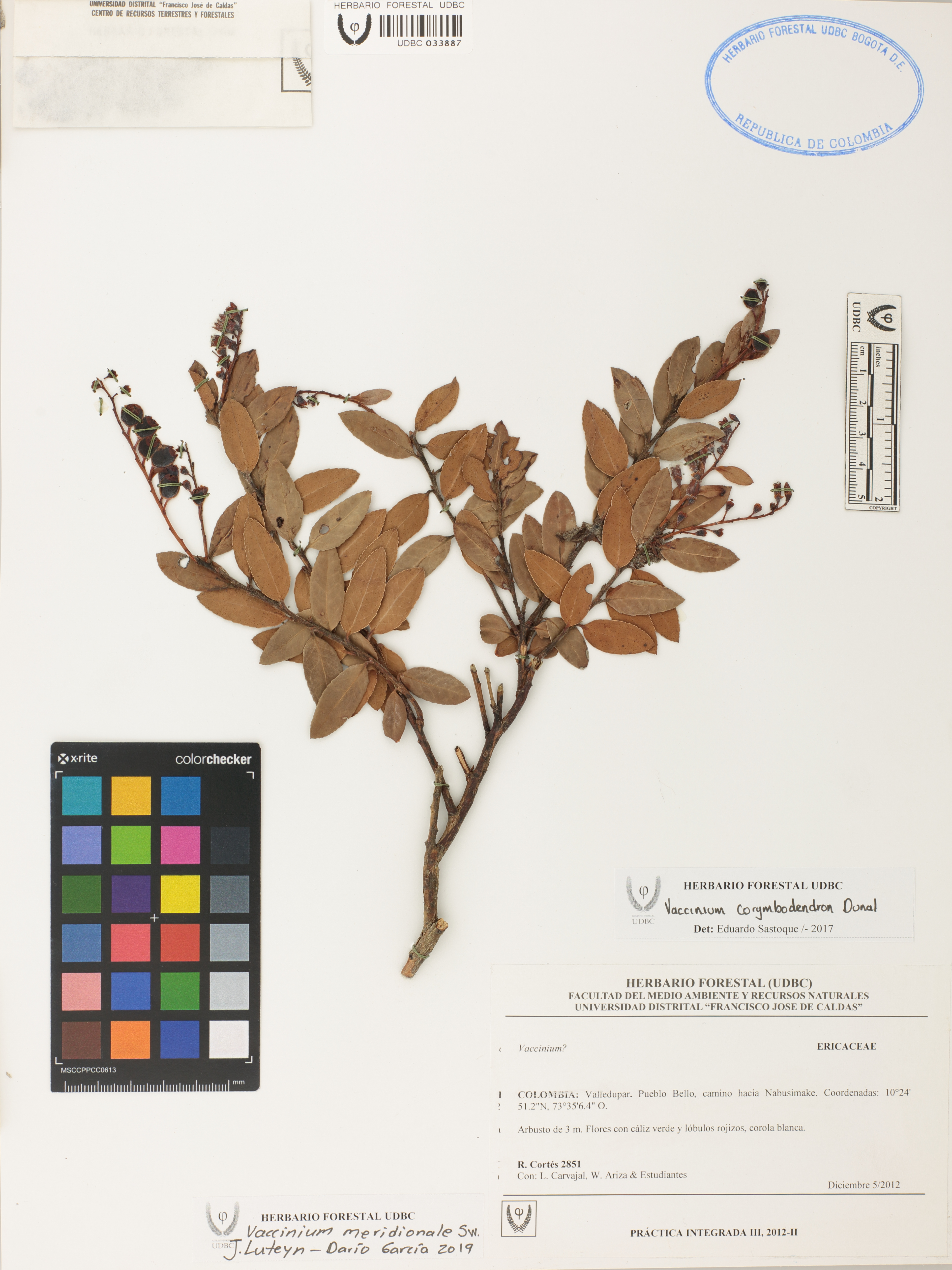 Fotografía del ejemplar Cortés, R. 2851, determinado como Vaccinium meridionale en el año 2019