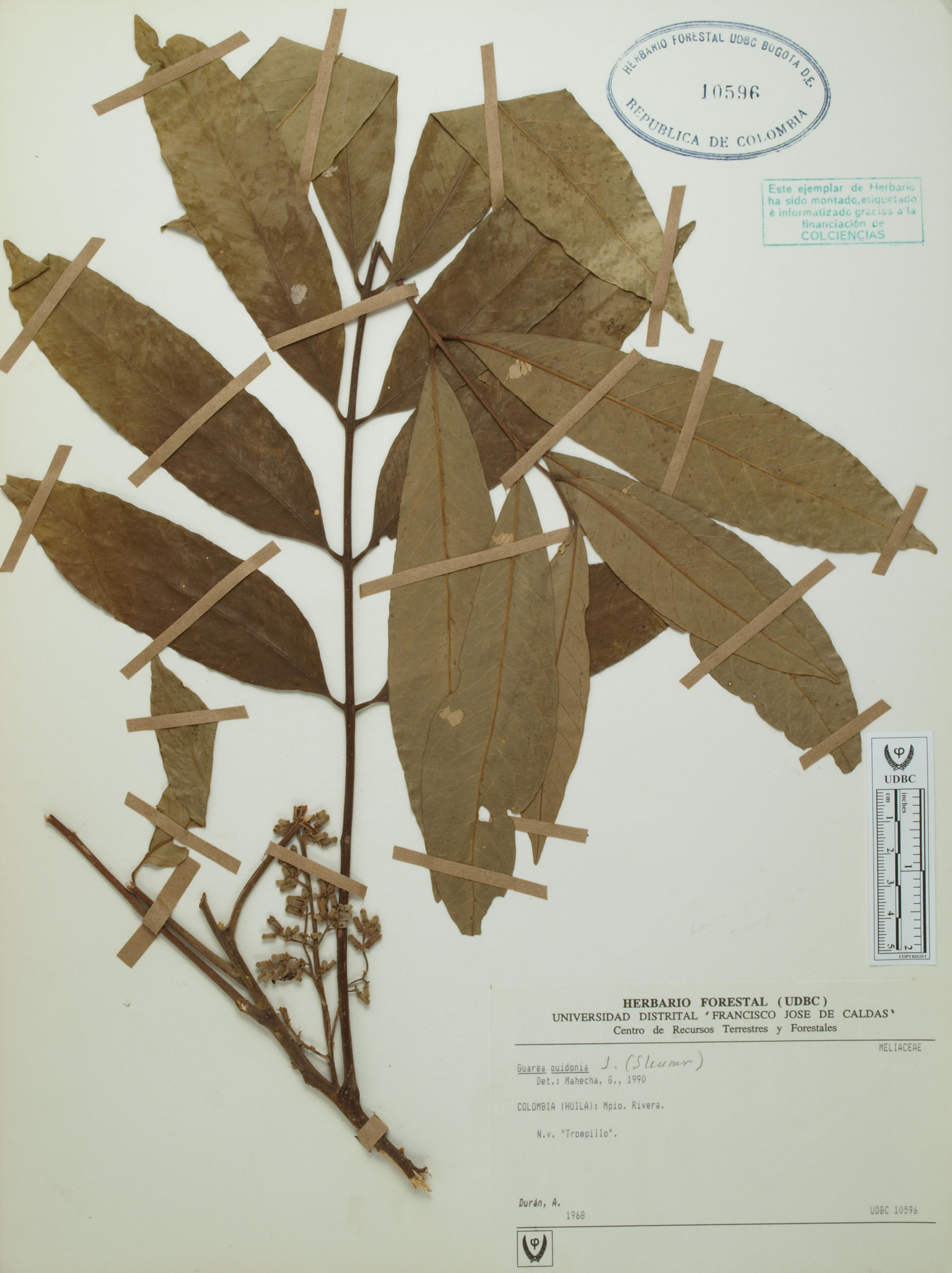 Fotografía del ejemplar Durán, A., determinado como Guarea guidonia en el año 1990