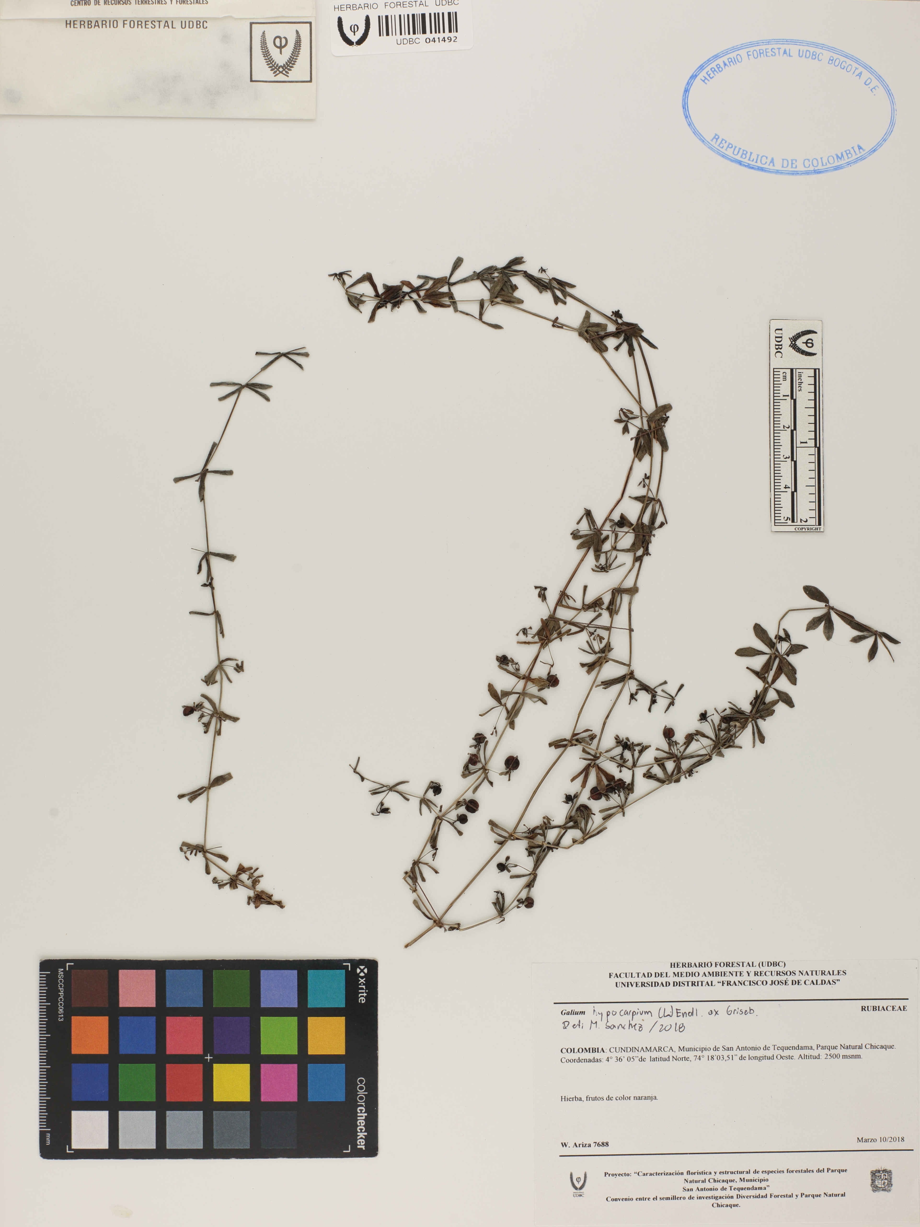 Fotografía del ejemplar Ariza, W. 7688, determinado como Galium hypocarpium en el año 2018