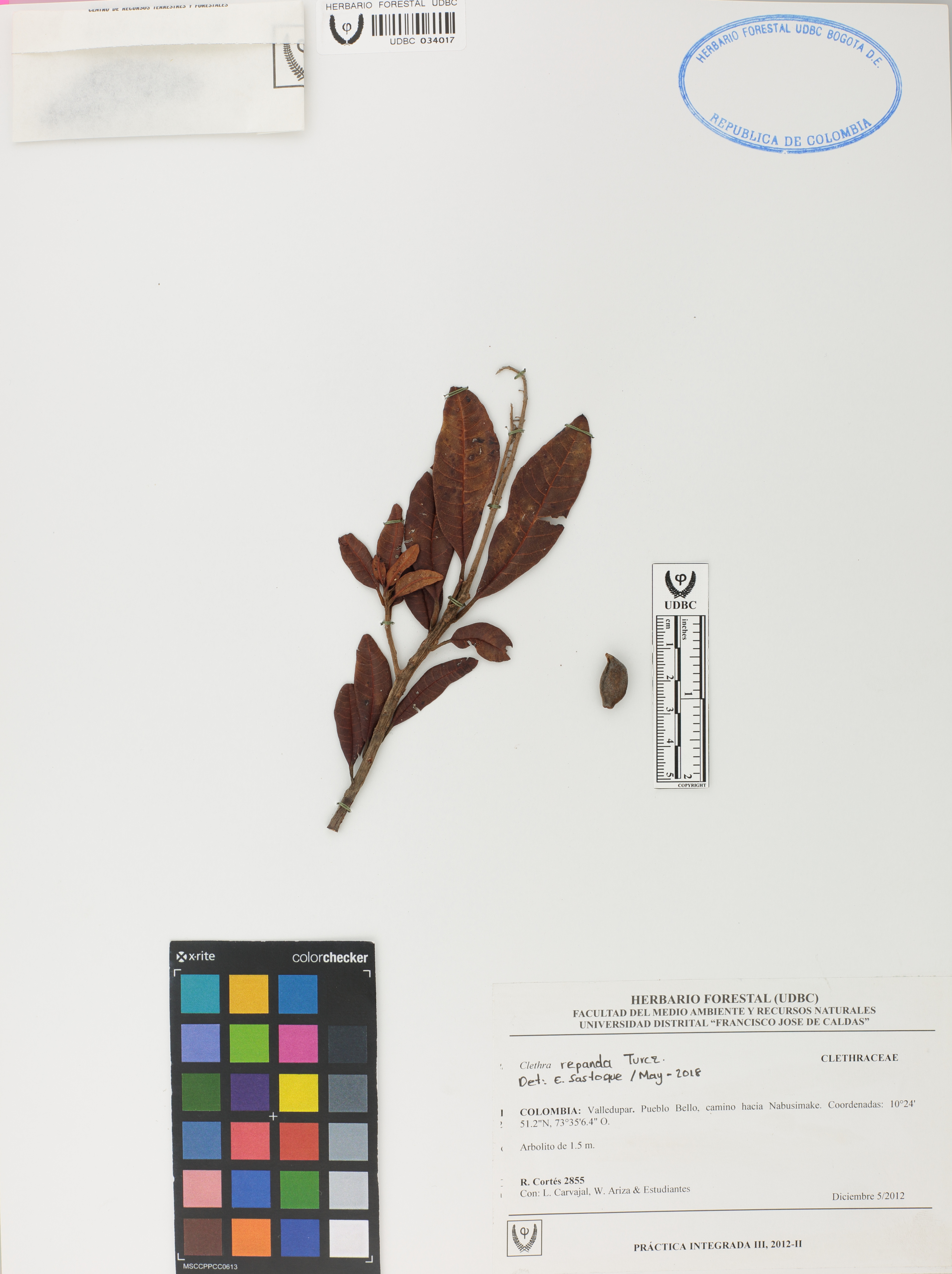 Fotografía del ejemplar Cortés, R. 2855, determinado como Clethra repanda en el año 2018