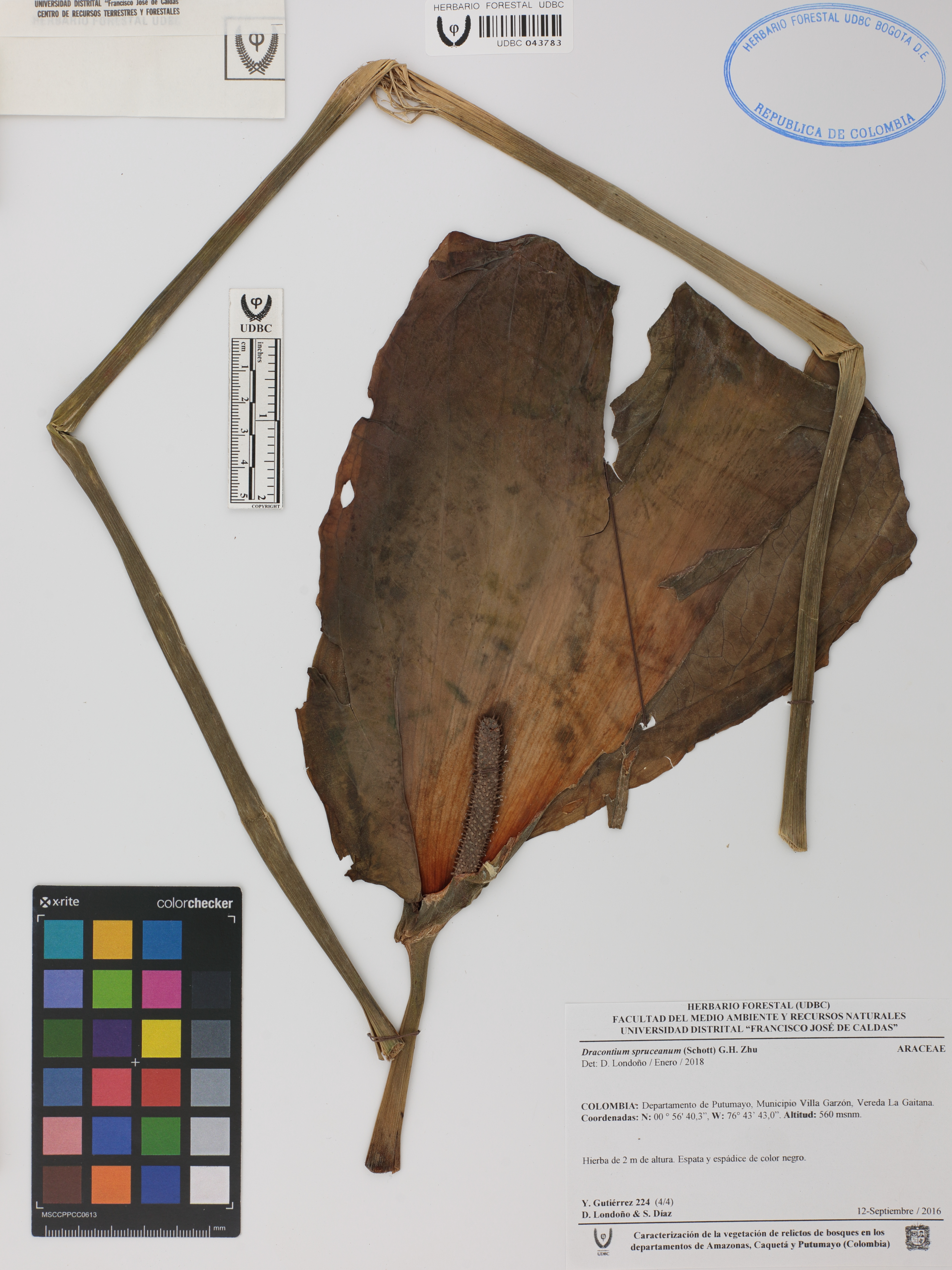 Fotografía del ejemplar Gutiérrez, Y. 224, determinado como Dracontium spruceanum en el año 2018