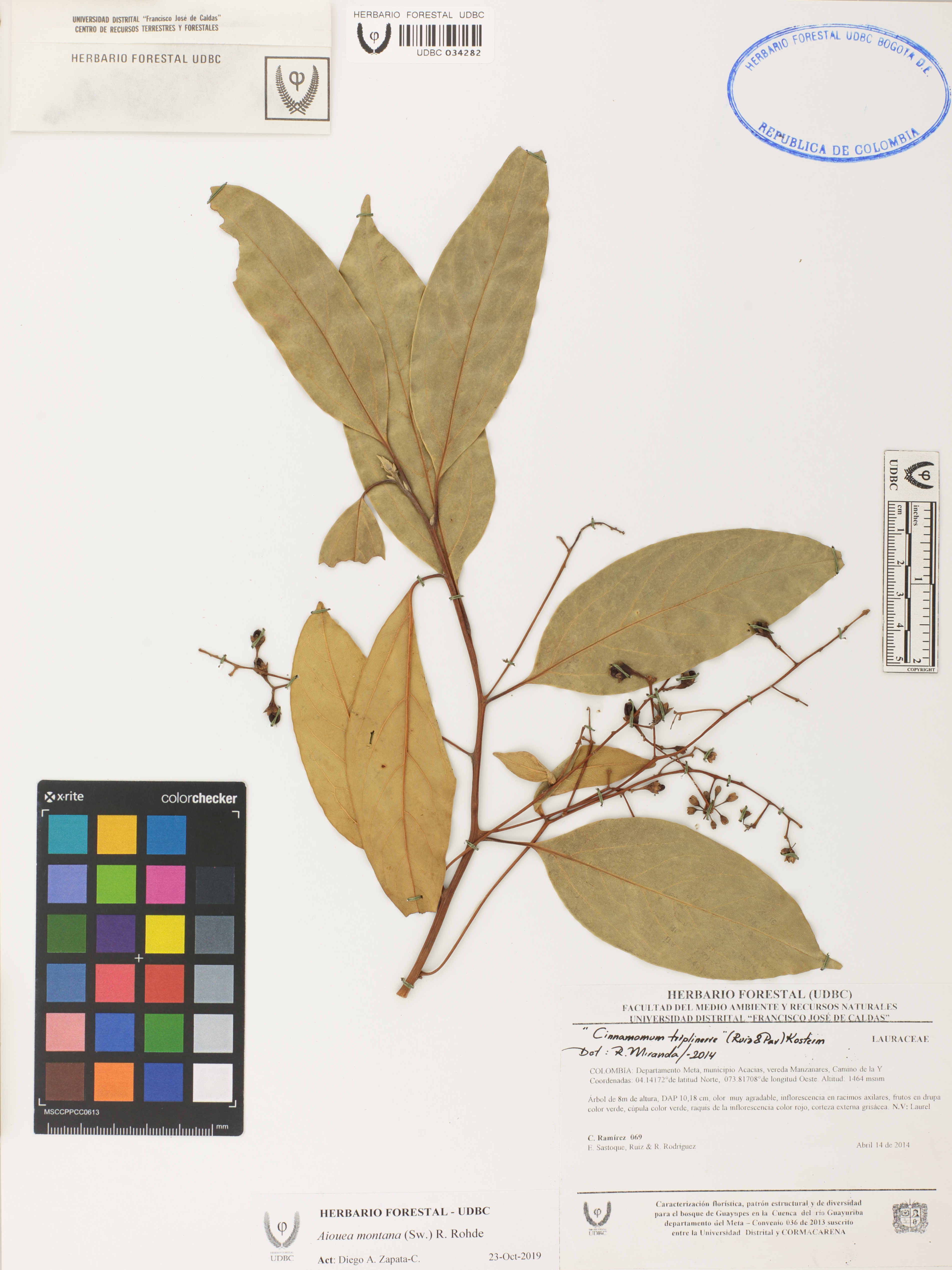 Fotografía del ejemplar Ramírez, C. 69, determinado como Aiouea montana en el año 2014