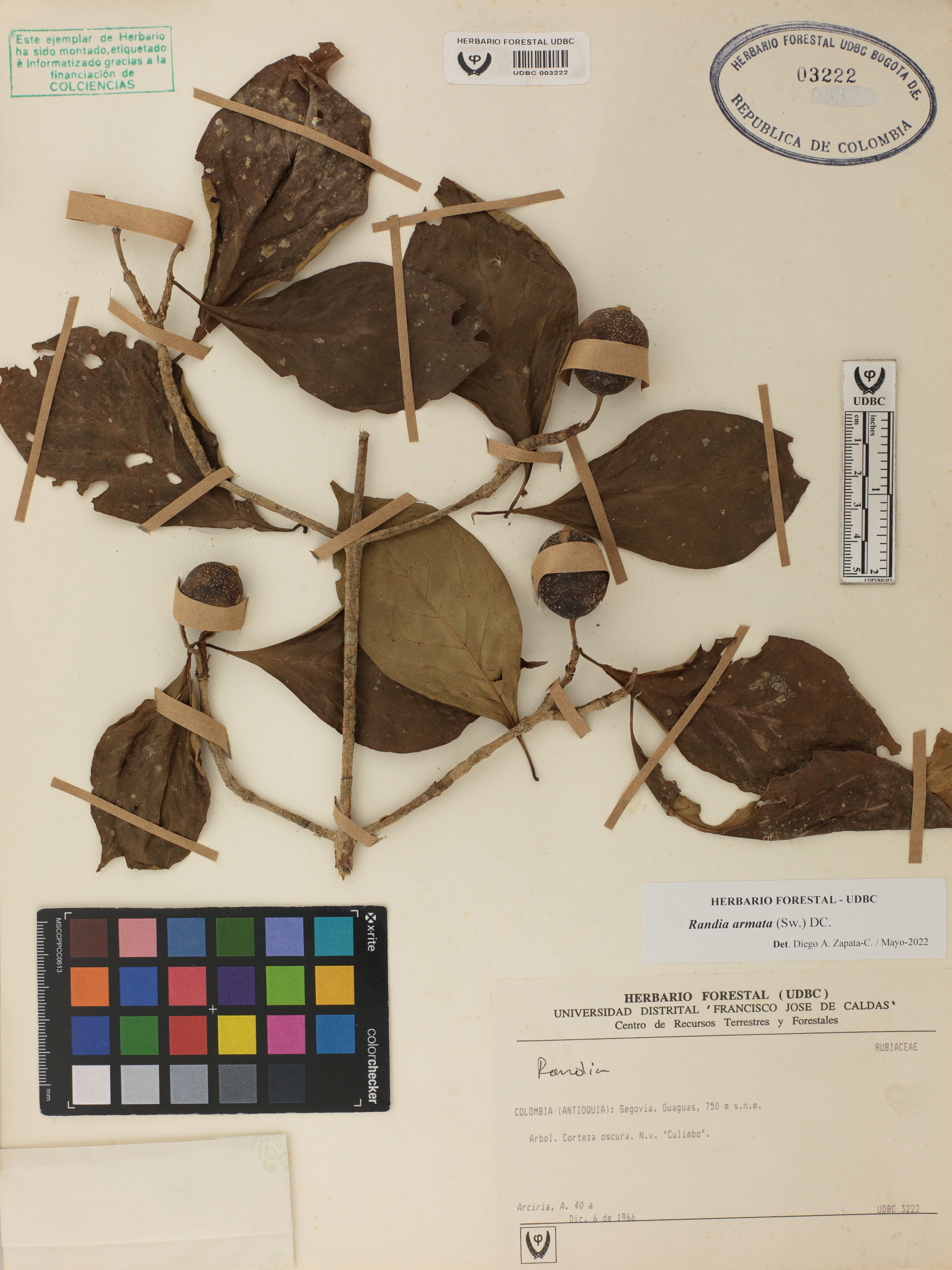 Fotografía del ejemplar Arciria, A., determinado como Randia armata en el año 2022