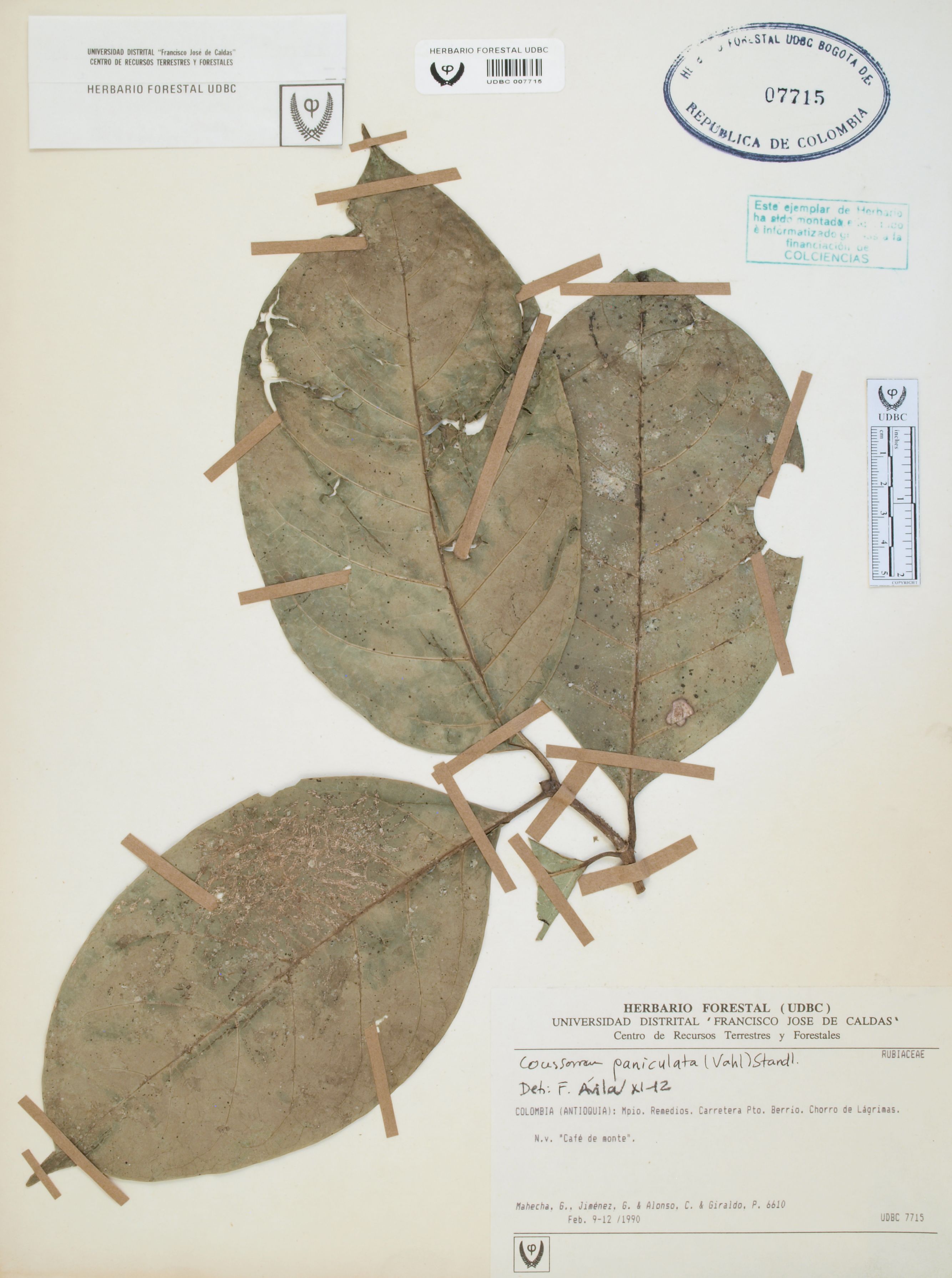 Fotografía del ejemplar Mahecha, G. 6610, determinado como Coussarea paniculata en el año 2012