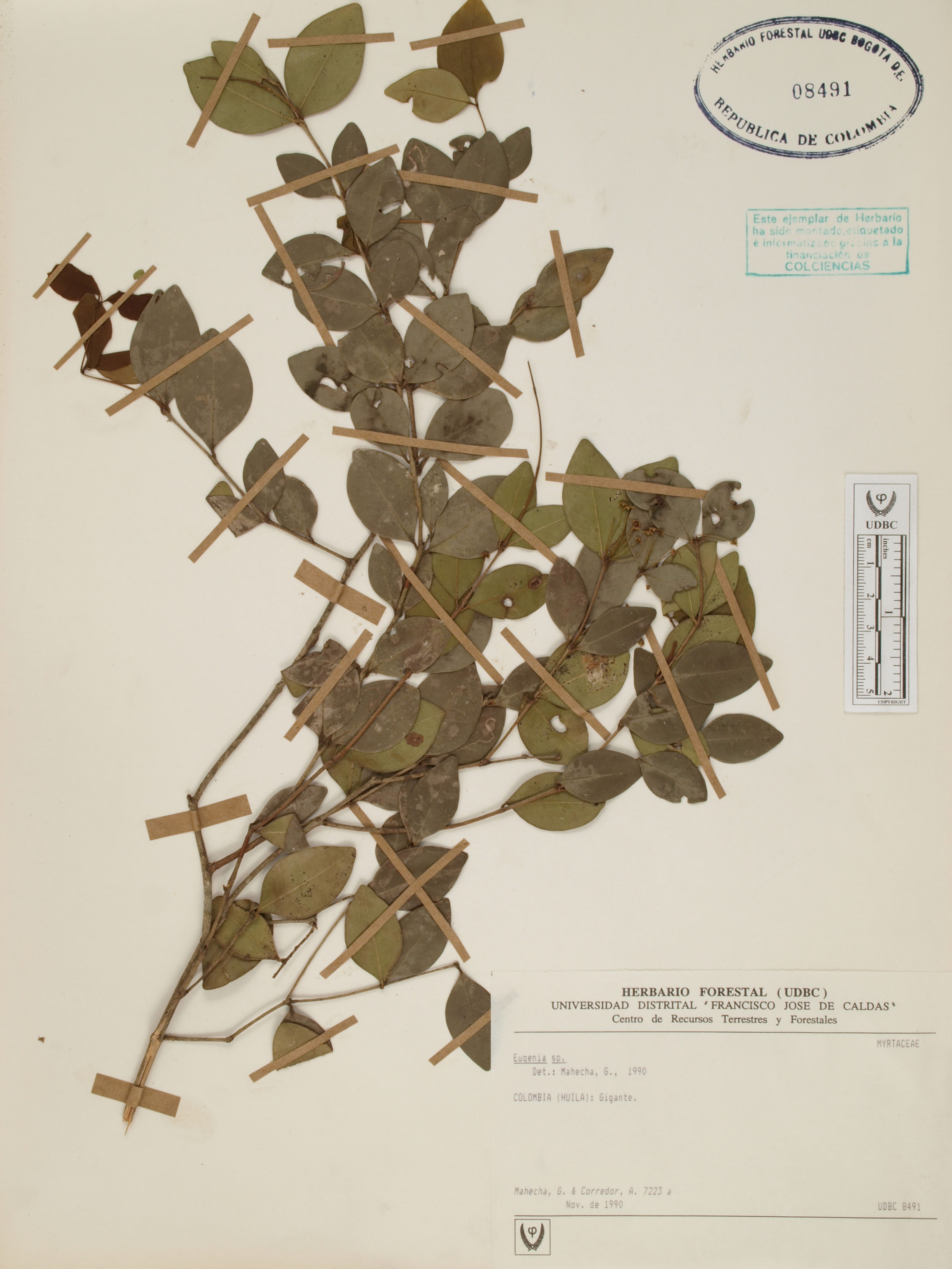 Fotografía del ejemplar Mahecha, G. 7223, determinado como Eugenia sp.