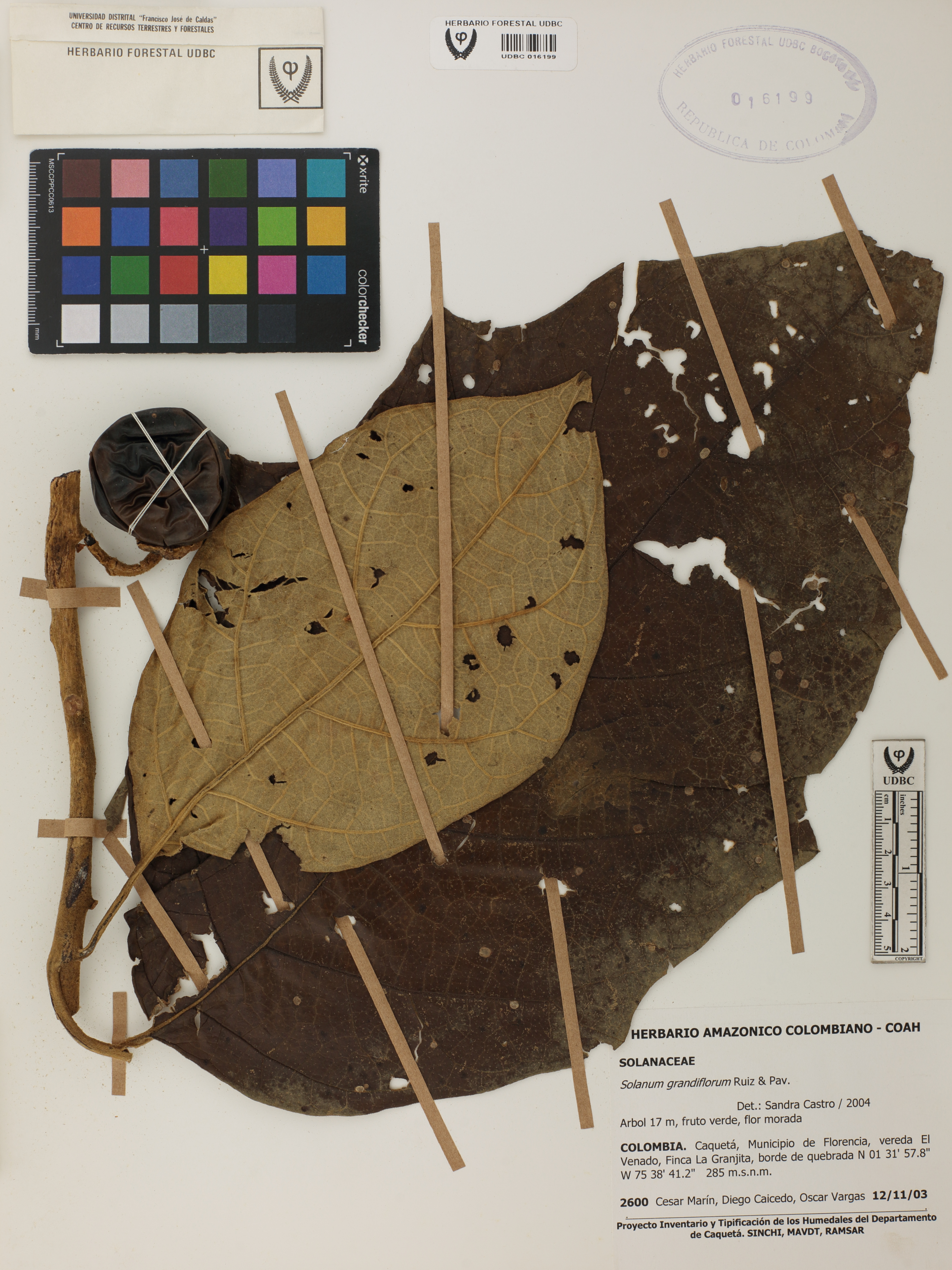 | dc.description | Fotografía del ejemplar Marín, C. 2600, determinado como Solanum grandiflorum en el año 2004 | |