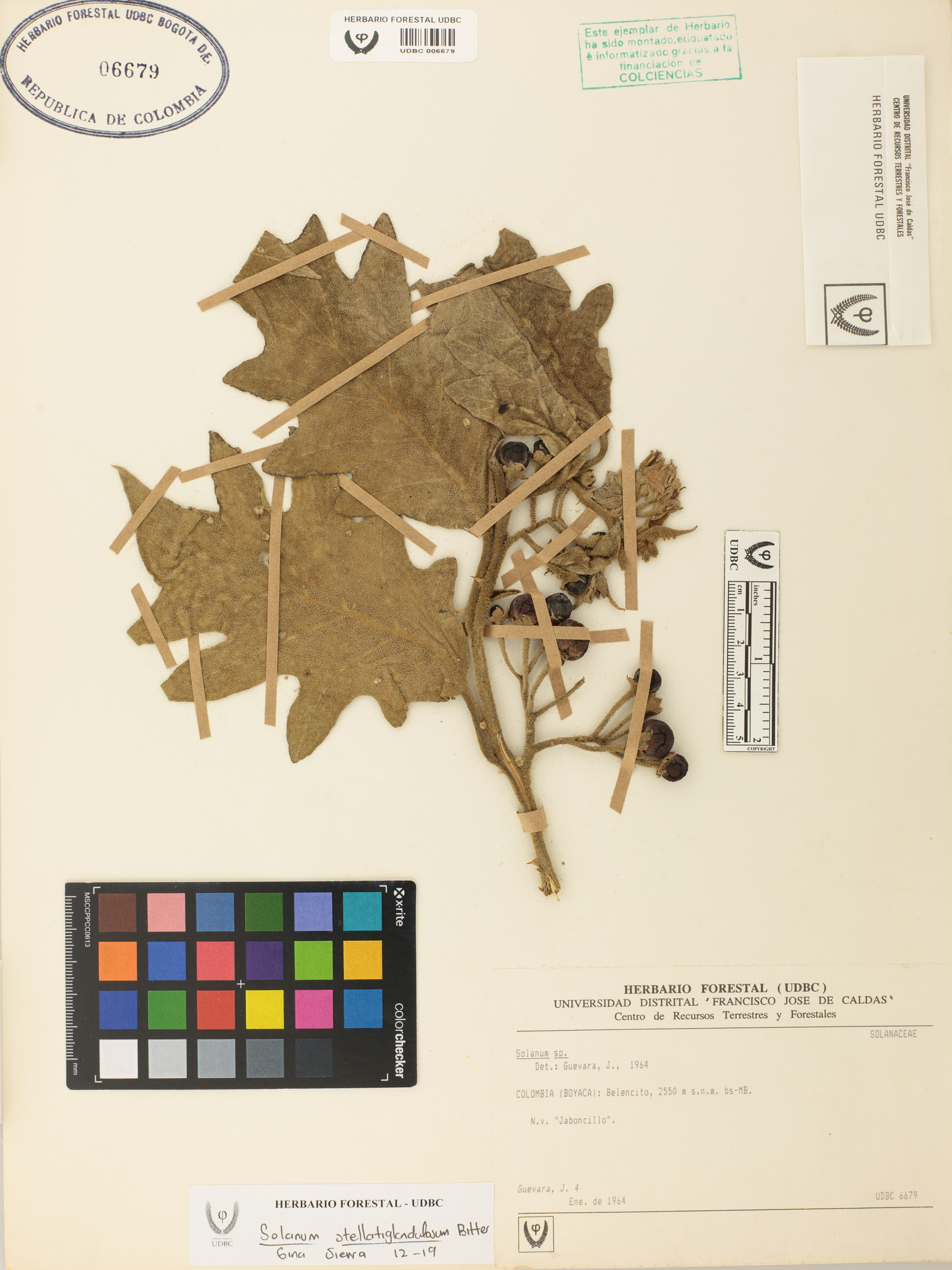 Fotografía del ejemplar Guevara, J. 4, determinado como Solanum stellatiglandulosum en el año 2019