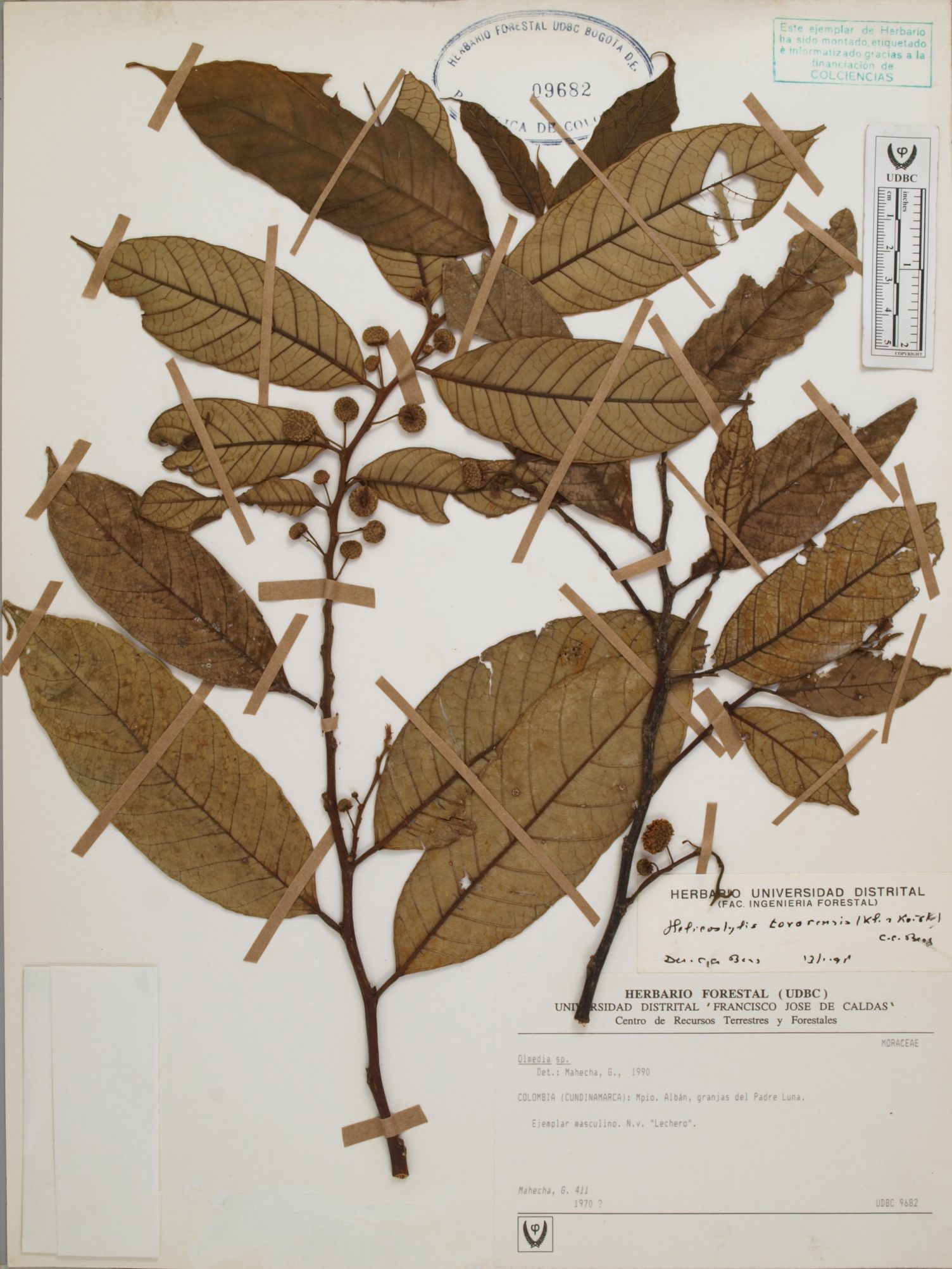 Fotografía del ejemplar Mahecha, G. 411, determinado como Helicostylis tovarensis en el año 1997