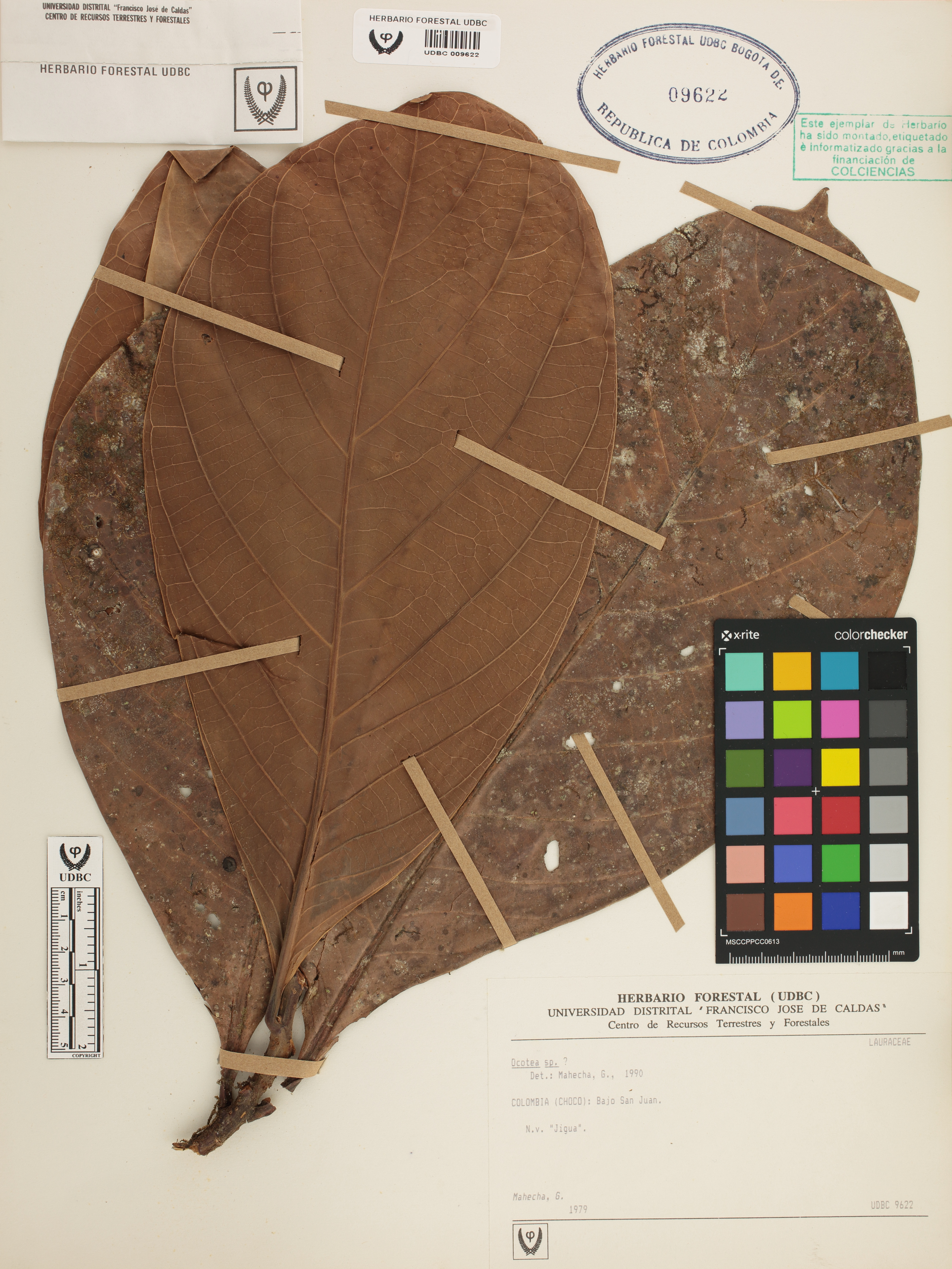 Fotografía del ejemplar Mahecha, G., determinado como Ocotea sp. en el año 1990